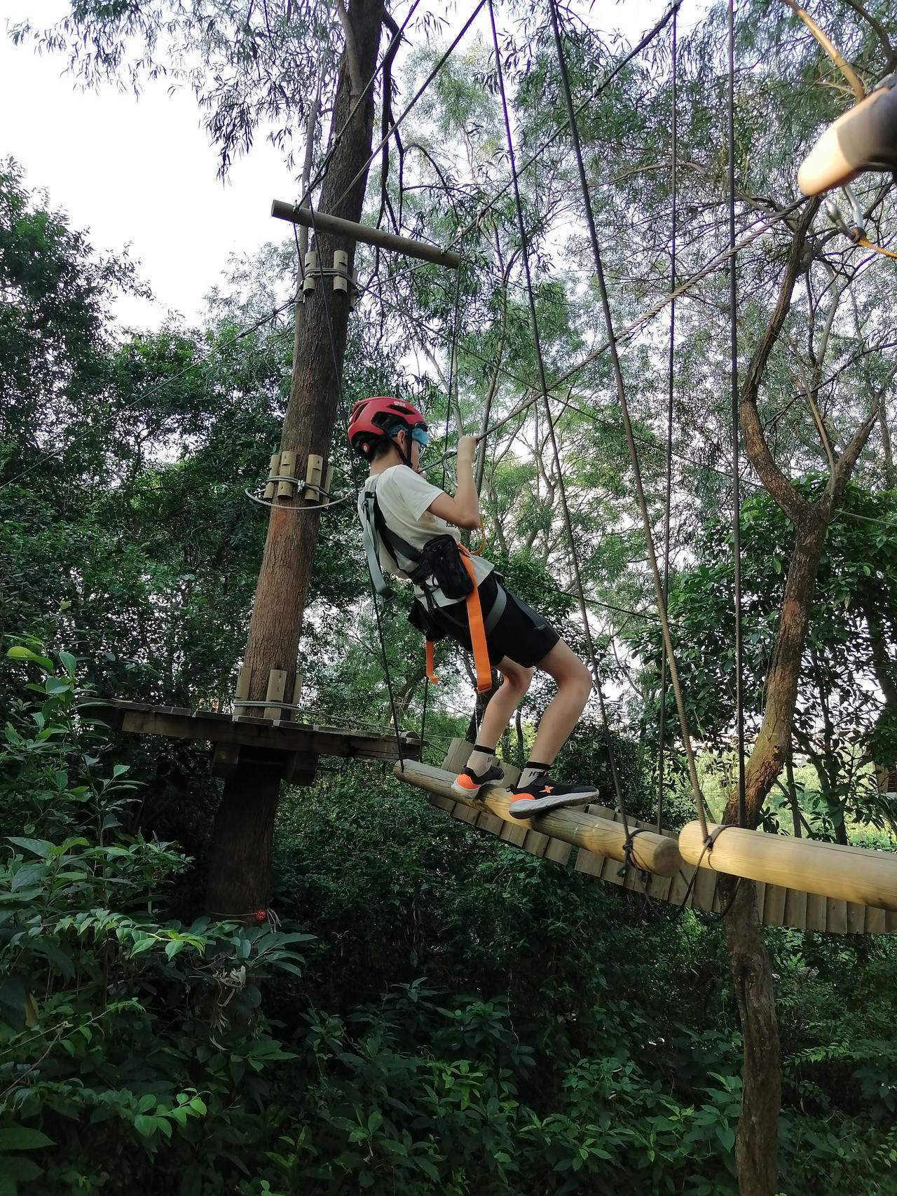 这养男孩跟养女孩真的不一样,男孩子对逛街,逛公园,景区,一点兴趣也没有。我儿子就是这样的,从来不逛街,连陪我去都不愿意,公园也不去逛,爱好跑步,爬山,还有骑车,这些我一个也不爱,难怪他越大越喜欢跟他爸一起玩,开始有共同语言了。 前天才去惠州爬完罗浮山,我腿疼得很,现在走路都费劲了,可他们两父子还爬到山顶呢?他们是腿也不痛,看来经常运动就是不一样啊。 昨天儿子问去哪里玩啊,在家很无聊,我说网上看看哪里有好玩的,突然看到松山湖有个丛林探险,我给儿子看看他喜欢吗?他说要去体验一把,从厚街开车到松山湖花了一个多小时,来到丛林探险地,看到好多人过来玩,我问儿子想玩什么线,他说来个红线,等级高点,我在网上买了票120元/人,我看到在高空走路,要我都有些害怕,儿子花了不到半小时就走完全程,儿子说还不够刺激。我说要不再来挑战黑线,他说不要了,下次吧。 我问儿子为什么,他说黑线要140元,今天一次性花那么多钱他心疼,留着下次他月考考的好了,我再奖励他玩黑线,我一听儿子这么说,觉得他长大了。男生运动喜好 大男孩子的乐趣 男士兴趣 带男孩子的感觉