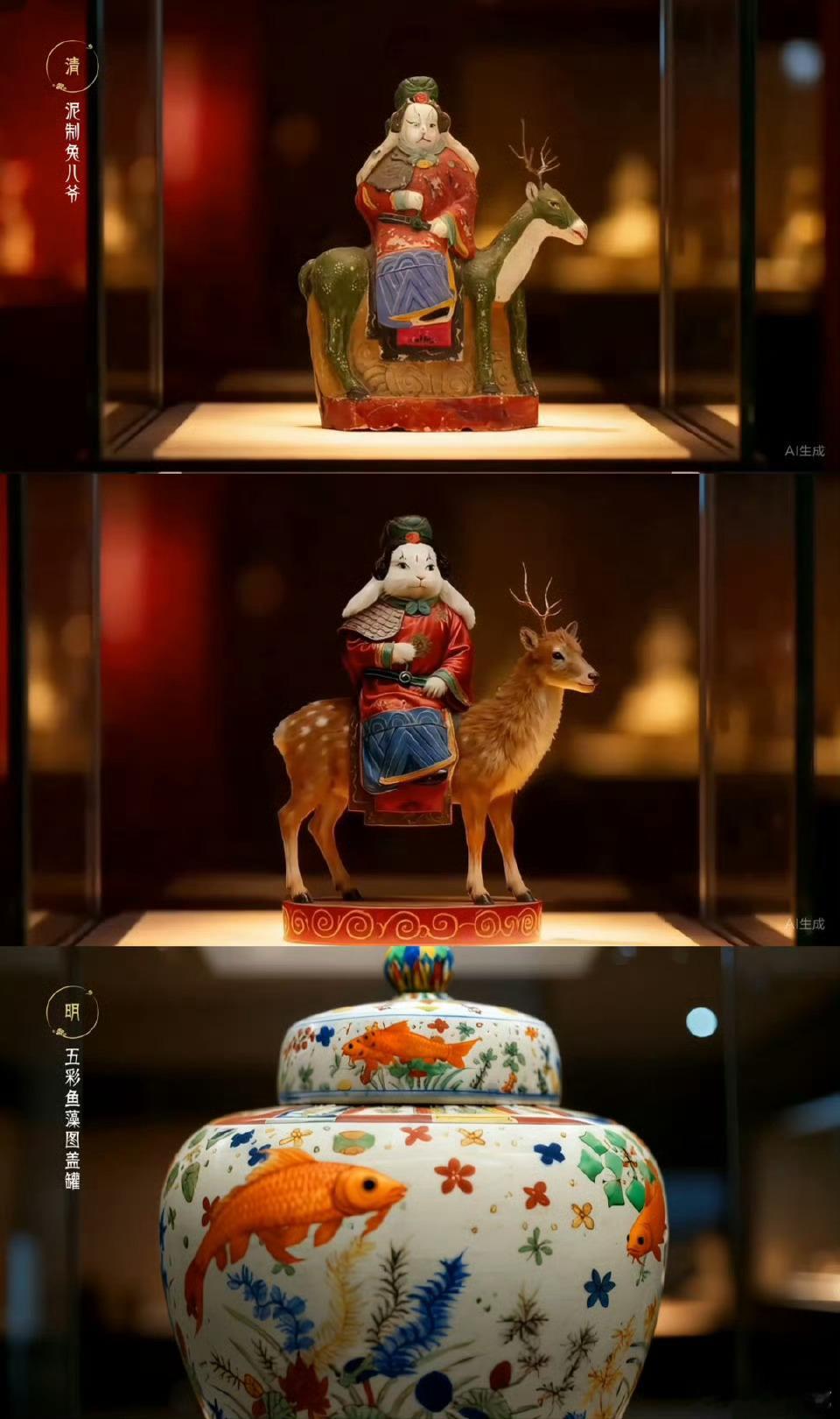 故宫文物陪我们过中秋故宫中秋放大招!北宋孩儿枕变萌娃,清泥兔儿爷骑鹿,铜鹤翱翔