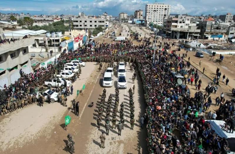 真理只在大炮射程之内,人质交接仪式当天,巴勒斯坦哈马斯恐怖分子在一栋建筑内站岗,孩子们从建筑里向外张望。加沙地带,2025年2月22日。(图片来源:路透社/哈特姆·哈立德) 雅虎正在使用人工智能来生成本文的要点。这意味着信息可能并不总是与文章内容相符。报告错误有助于我们改善体验。 生成关键要点 据报道,该恐怖组织还通过埃及调解员要求以色列国防军停止对加沙地带的空袭,以便完成任务。 哈马斯高级政治局官员马哈茂德·马尔达维在周日晚间的声明中否认了此前有关该恐怖组织承诺在国际监督下解除武装的报道。 马尔达维称这些指控是“捏造的”和“毫无根据的”,目的是“歪曲该运动的立场并混淆公众舆论”。 埃及外交部长巴德尔·阿卜杜拉蒂周日晚间对总部位于伦敦、沙特所有的中东报表示,哈马斯解除武装问题是“巴勒斯坦问题,将在巴勒斯坦框架内解决”。 周日早些时候,一名哈马斯消息人士告诉沙特旗下的阿拉伯电视台,该组织已开始收集已故以色列人质的遗体,以便进行移交。 该消息人士还声称哈马斯表示愿意最终解除武装,并解释说,归还遗体可能需要一些时间,但活着的人质的移交将分阶段进行。 无人机拍摄的画面显示,巴勒斯坦人和哈马斯在释放 Eliya Cohen、Omer Shem Tov 和 Omer Wenkert 的当天聚集在努塞拉特中心,他们三人是自 2023 年 10 月 7 日致命袭击以来被关押在加沙的人质,这是哈马斯和以色列之间停火和人质囚犯交换协议的一部分(图片来源:路透社/斯特林格) 无人机拍摄的画面显示,巴勒斯坦人和哈马斯在释放 Eliya Cohen、Omer Shem Tov 和 Omer Wenkert 的当天聚集在努塞拉特中心,他们三人是自 2023 年 10 月 7 日致命袭击以来被关押在加沙的人质,这是哈马斯和以色列之间停火和人质囚犯交换协议的一部分(图片来源:路透社/斯特林格) 更多的 据报道,该恐怖组织还通过埃及调解员要求以色列国防军停止对加沙地带的空袭,以便完成任务。 据阿拉伯电视台报道,消息人士称,“迅速而深入”的谈判“符合该运动的利益”。 哈马斯的“哈亚”将抵达开罗,将面临严密的安保 另外,据总部位于伦敦的卡塔尔国有媒体《阿拉伯报》报道,哈马斯高级官员哈利勒·哈亚将于周日晚间抵达开罗,参加哈马斯与以色列即将举行的停火谈判。 对此,一位埃及消息人士向该媒体证实,埃及情报总局(GIS)已对哈马斯代表团的行动和所在地采取了严格的安全措施。 据Al-Araby报道,这些措施包括对代表团成员进行严密的安全保卫,并“在代表团的路线和开罗会议地点周围安装干扰系统” 。 以色列为开罗谈判做准备 以色列总理办公室周日晚间宣布,总理本雅明内塔尼亚胡已指示由战略事务部长罗恩德默率领的以色列人质谈判代表团前往开罗进行会谈。 谈判将于周一举行。