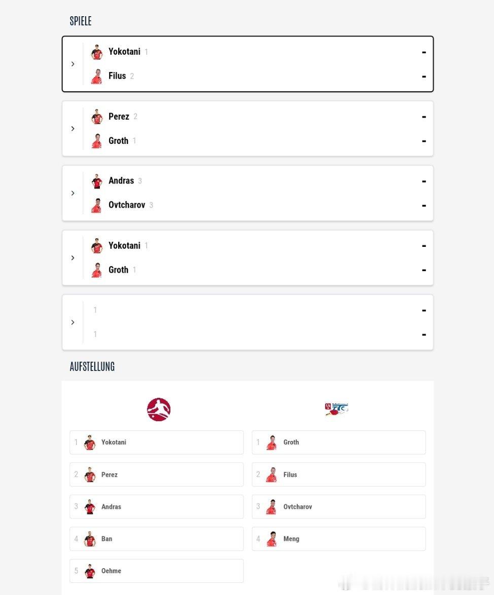 2025-2026赛季德甲乒乓球第五轮对阵表: