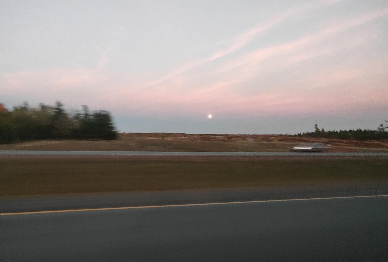 右边太阳渐渐下山,左边月亮慢慢升起,八月十五的夜晚,孩子开车紧赶慢赶晚上八点半终