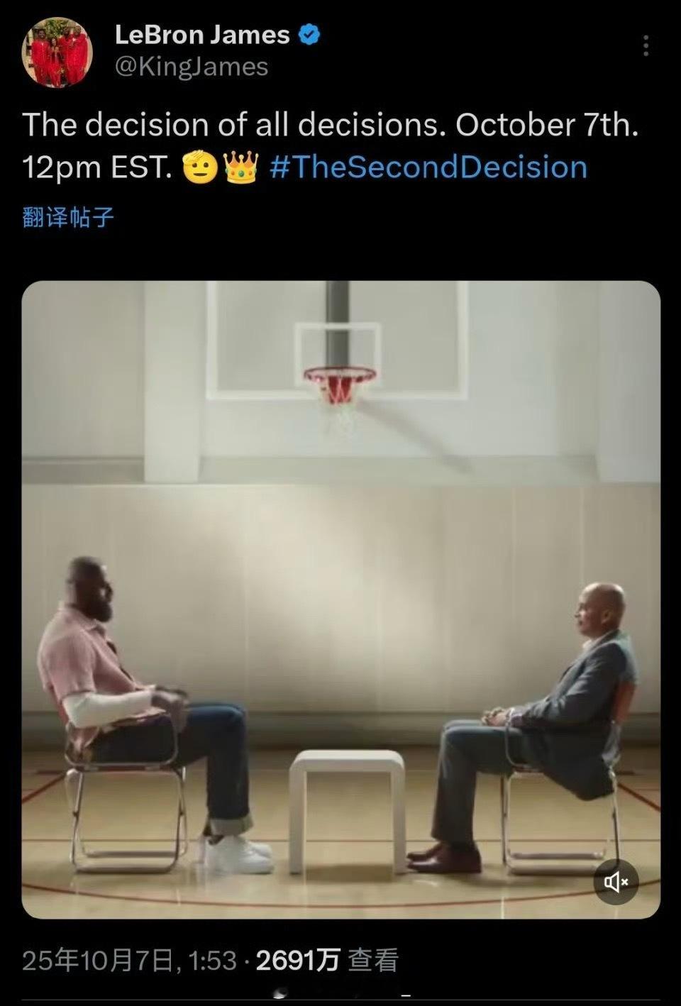 詹姆斯将宣布重大决策决定二上演!詹姆斯官宣“10月7日,将公布所有决定中的决定!”
