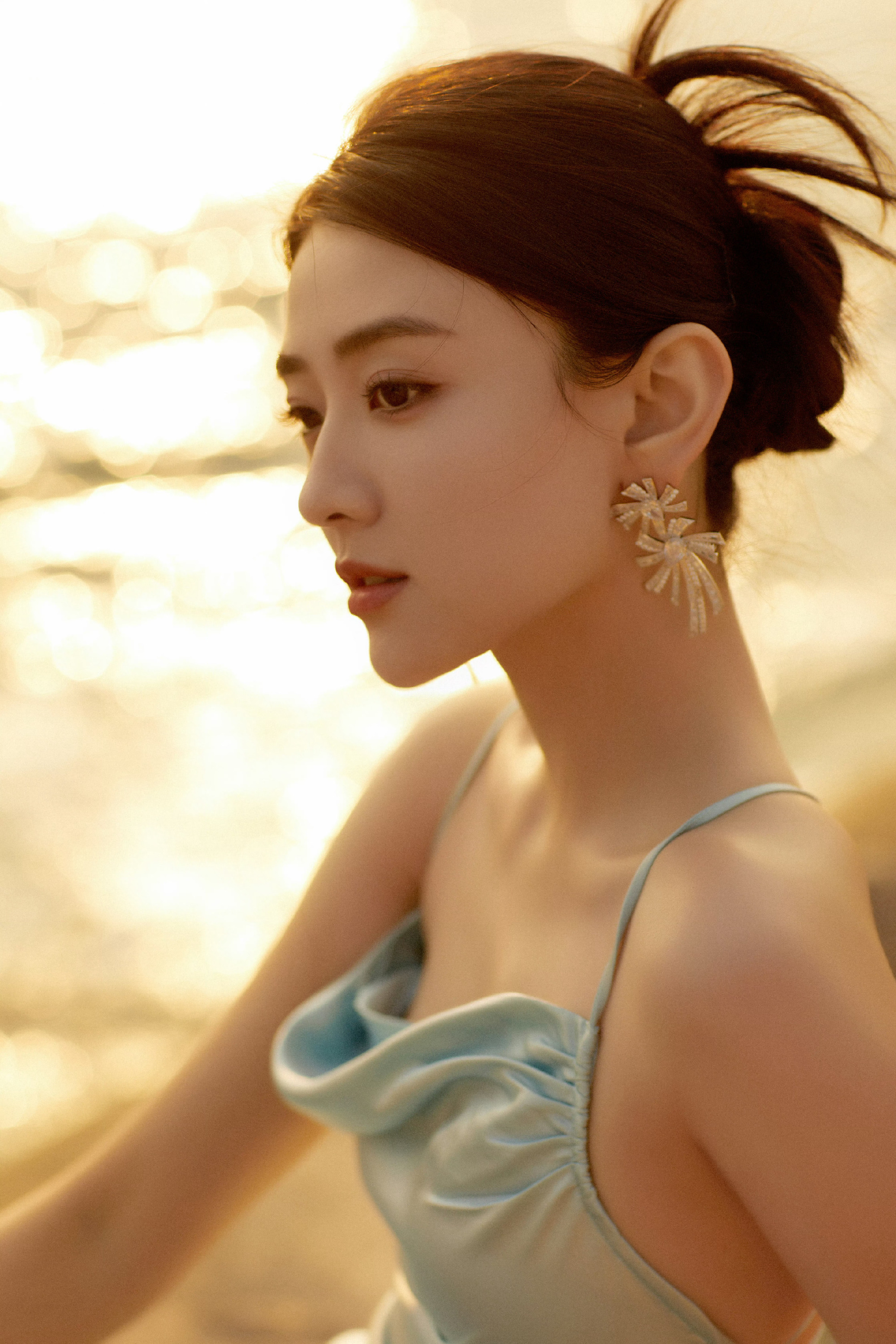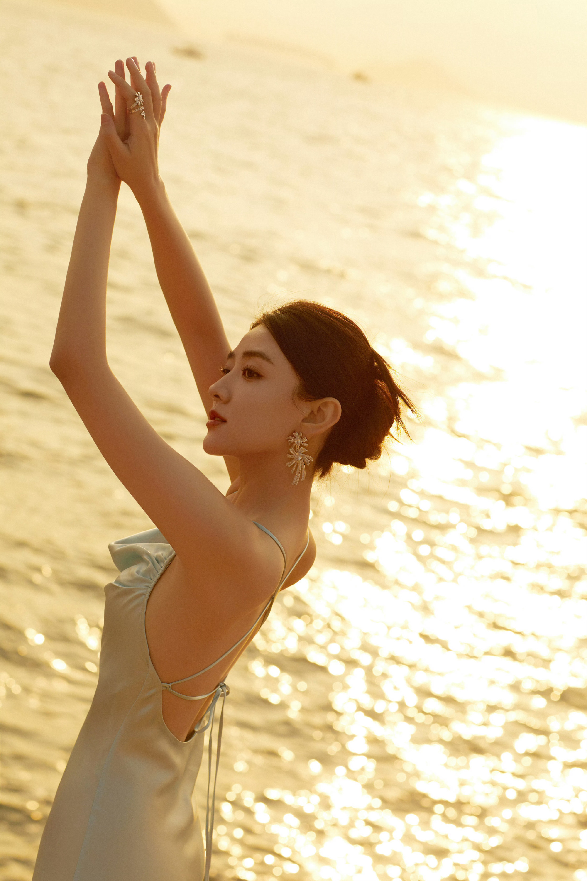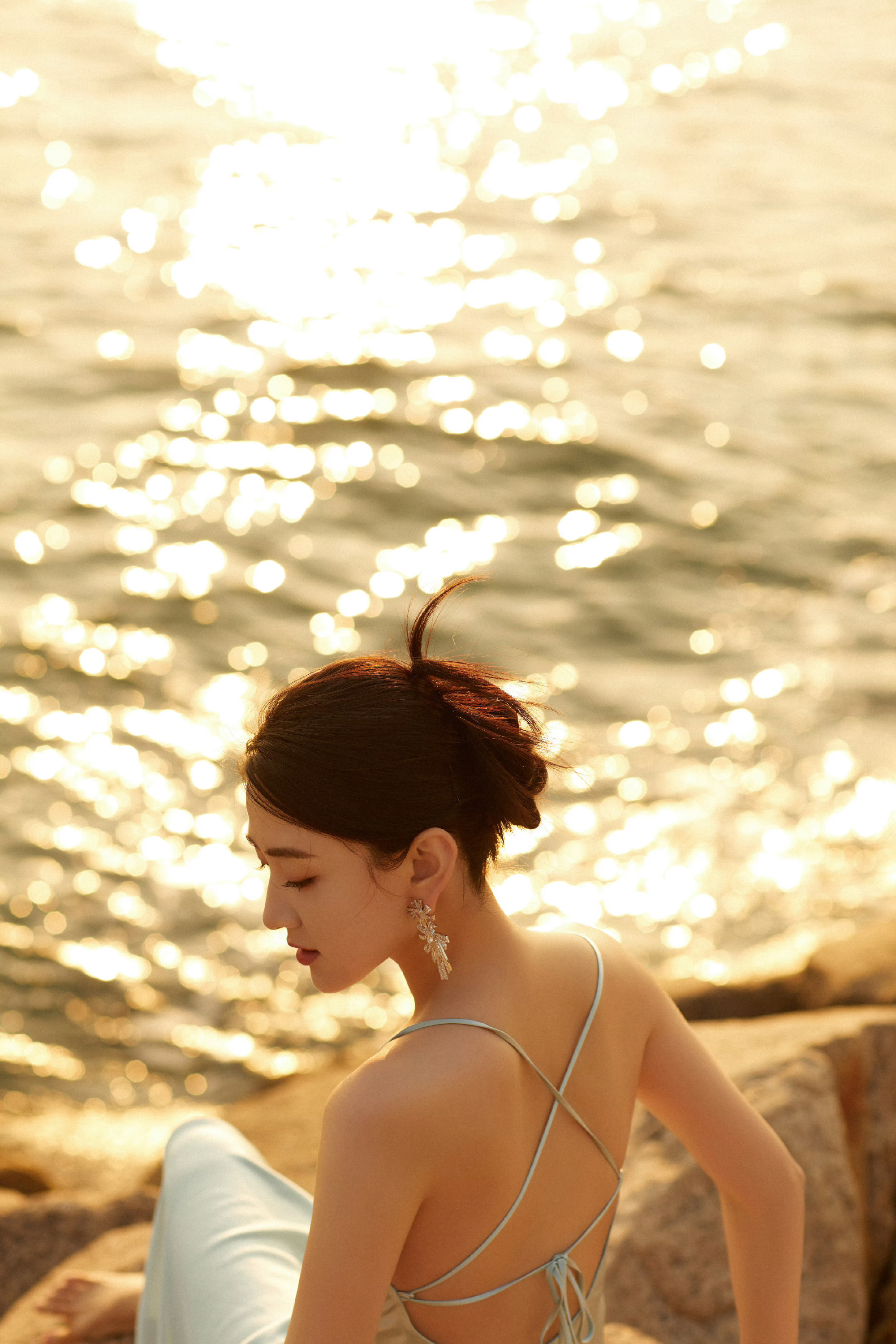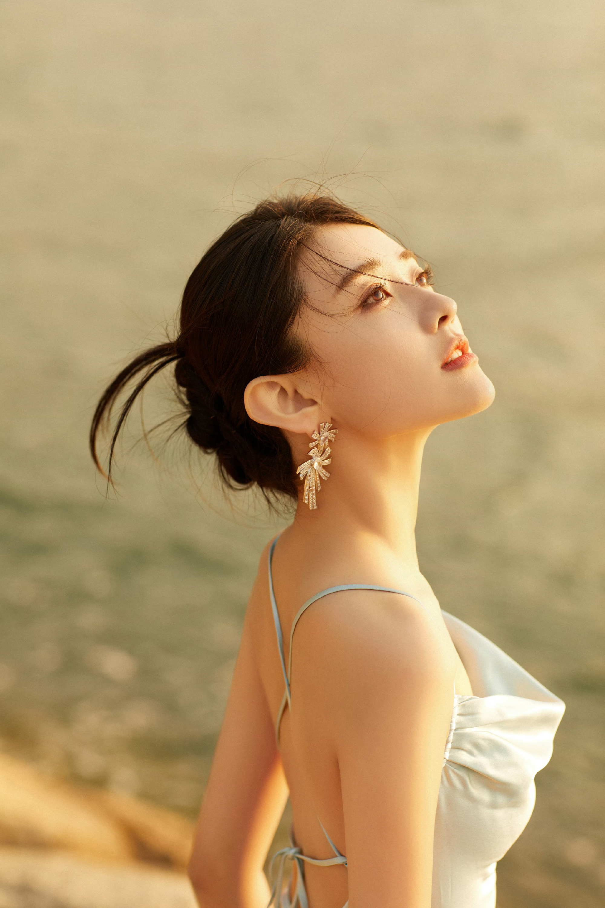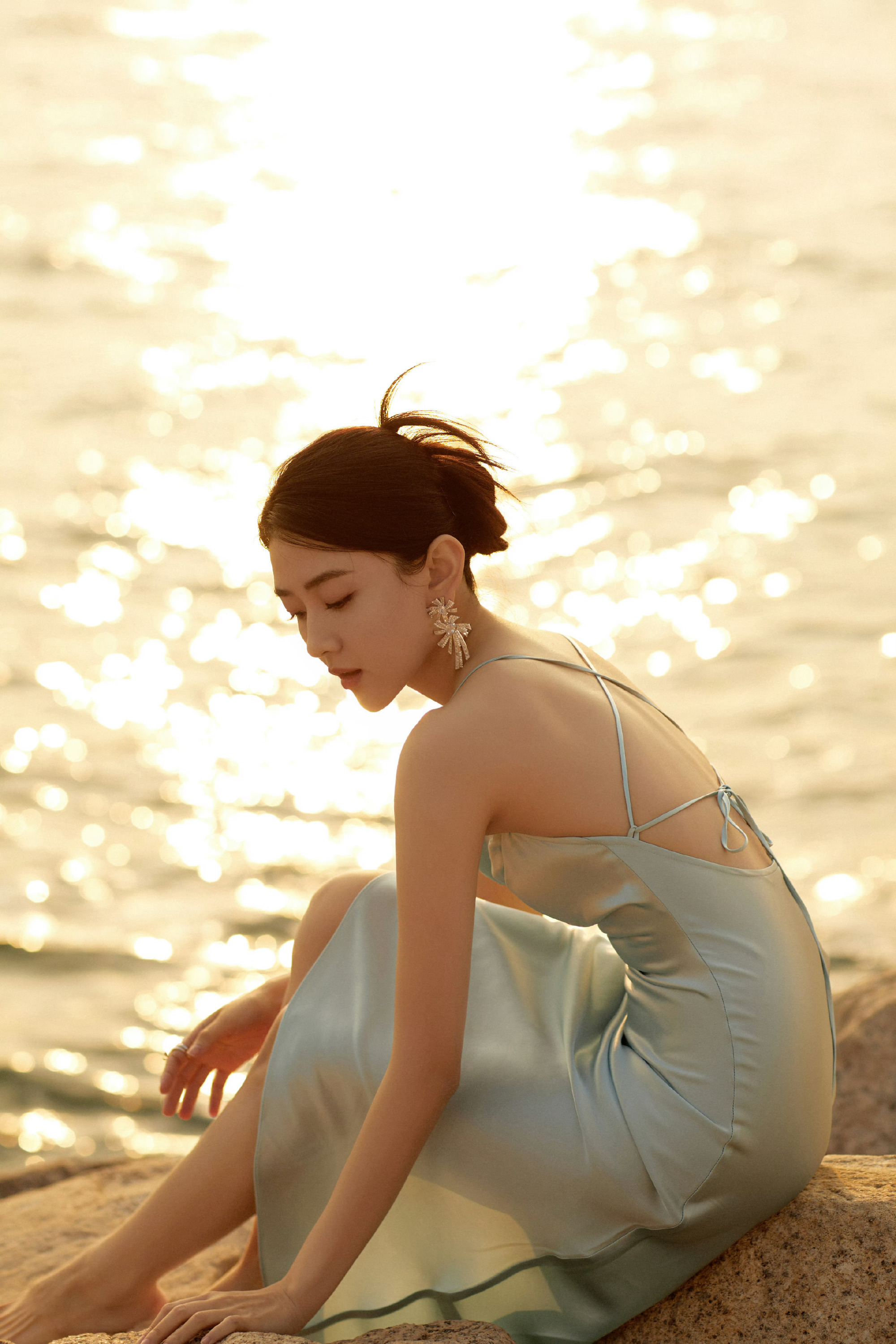 梁洁海边大片,吊带裙美背,好柔美治愈的小姐姐