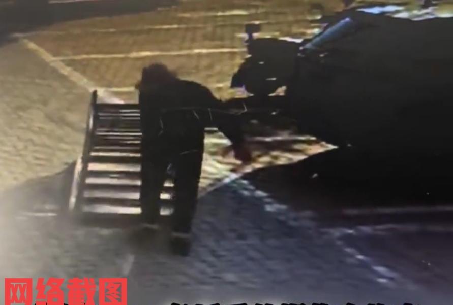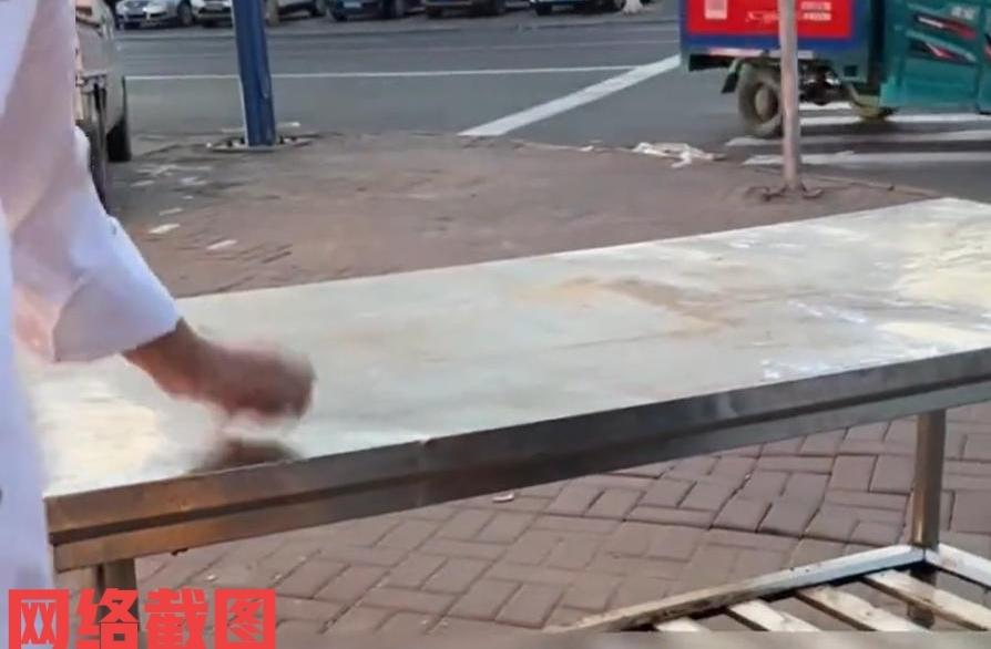吉林,一名九旬老人,看到一家饭店门口有一个不锈钢的操作台,于是就把它倒过来,一步