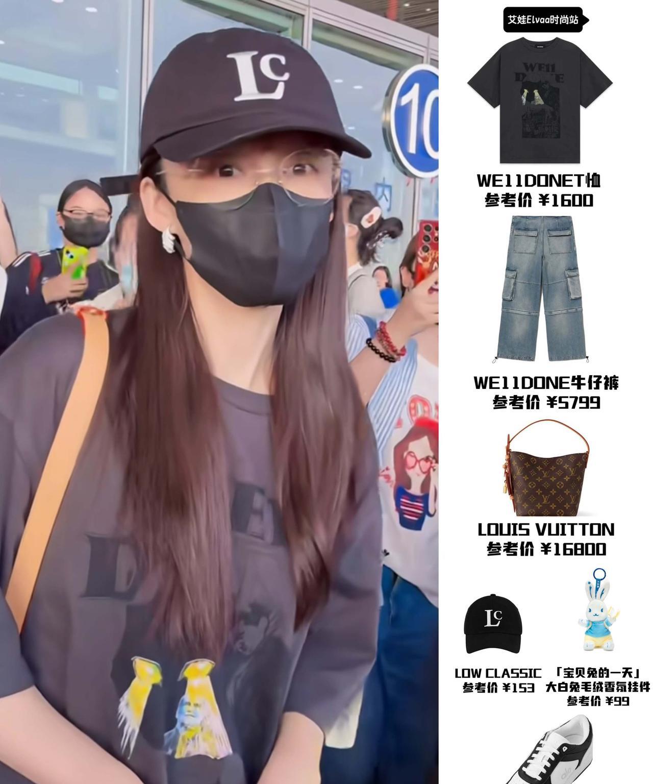 李沁今天穿得像个男孩,好酷~ 李沁机场到达,今天穿黑色T恤搭配牛仔裤,整个造型酷酷的,这双鞋也是穿了好多次了,看来是真爱啊~
