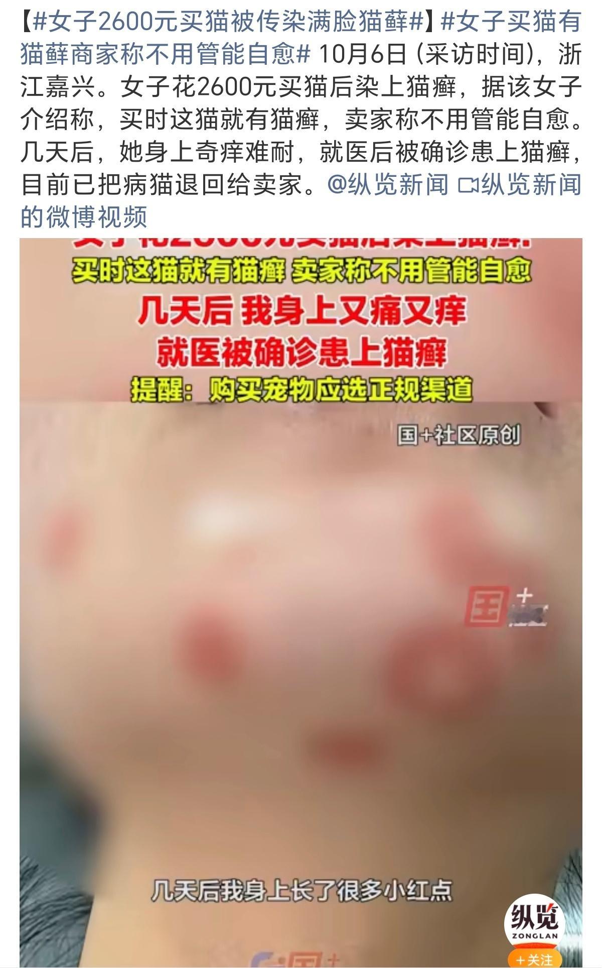 女子2600元买猫被传染满脸猫藓这商家真丧良心啊居然说能自愈这不得赔人家钱…