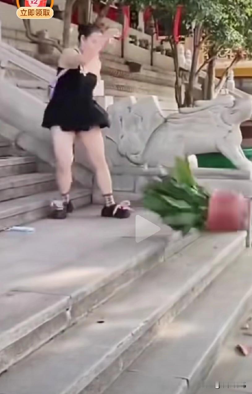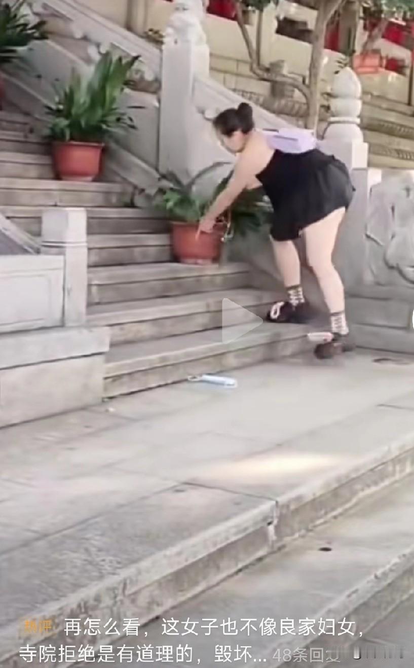 真的是大跌眼镜。 一女子因着装问题被拒进寺庙,然后开启撒泼式打砸,将寺庙门口的盆栽悉数摔烂。 古人讲究有伤风化,确实女子打扮太过漏点,虽然我们一直崇尚科学,不封搞封建迷信,但是既然来了就要遵从寺庙规矩,寺庙不光是祈福还愿,也是文化传承,你穿成这个样子,恐怕得道高僧也无心敲木鱼了呀! 你当他们都是释永信了?