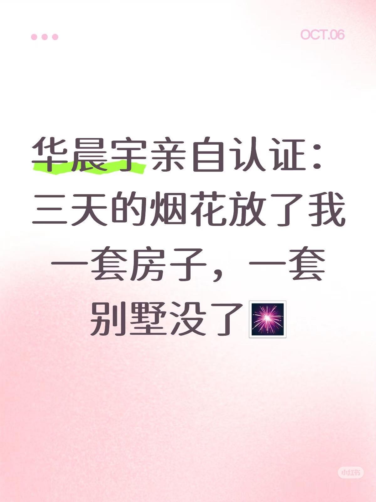 华晨宇认证了三天烟花放了一套别墅! 太牛了👍玩的是大。 华晨宇在南京开了三场演