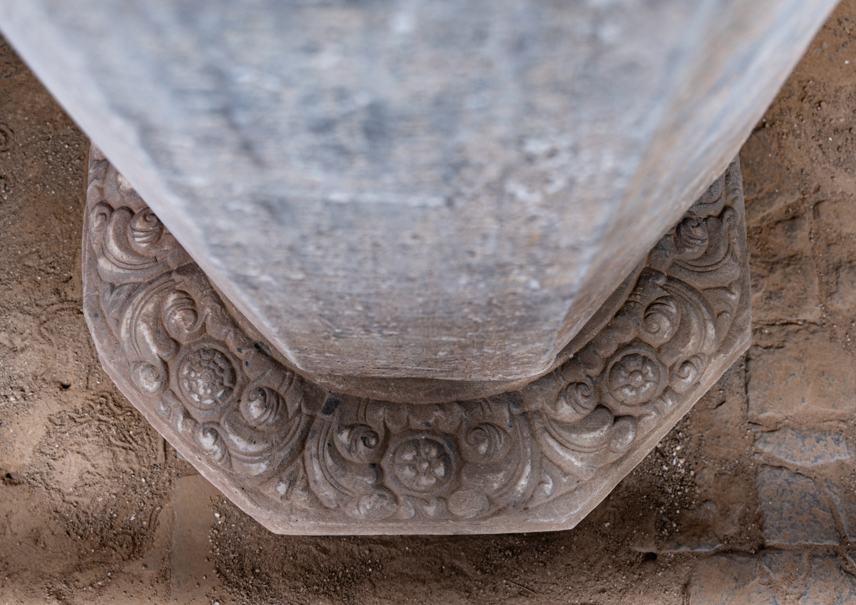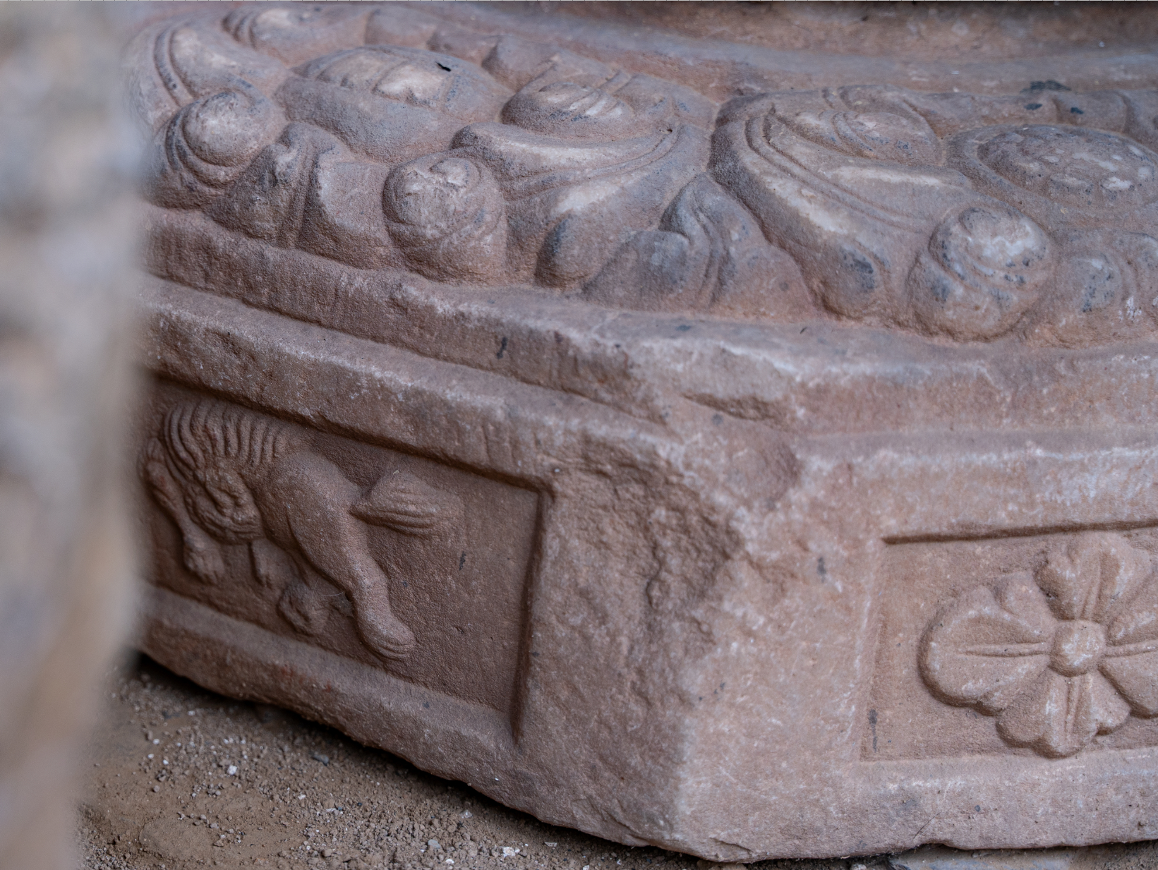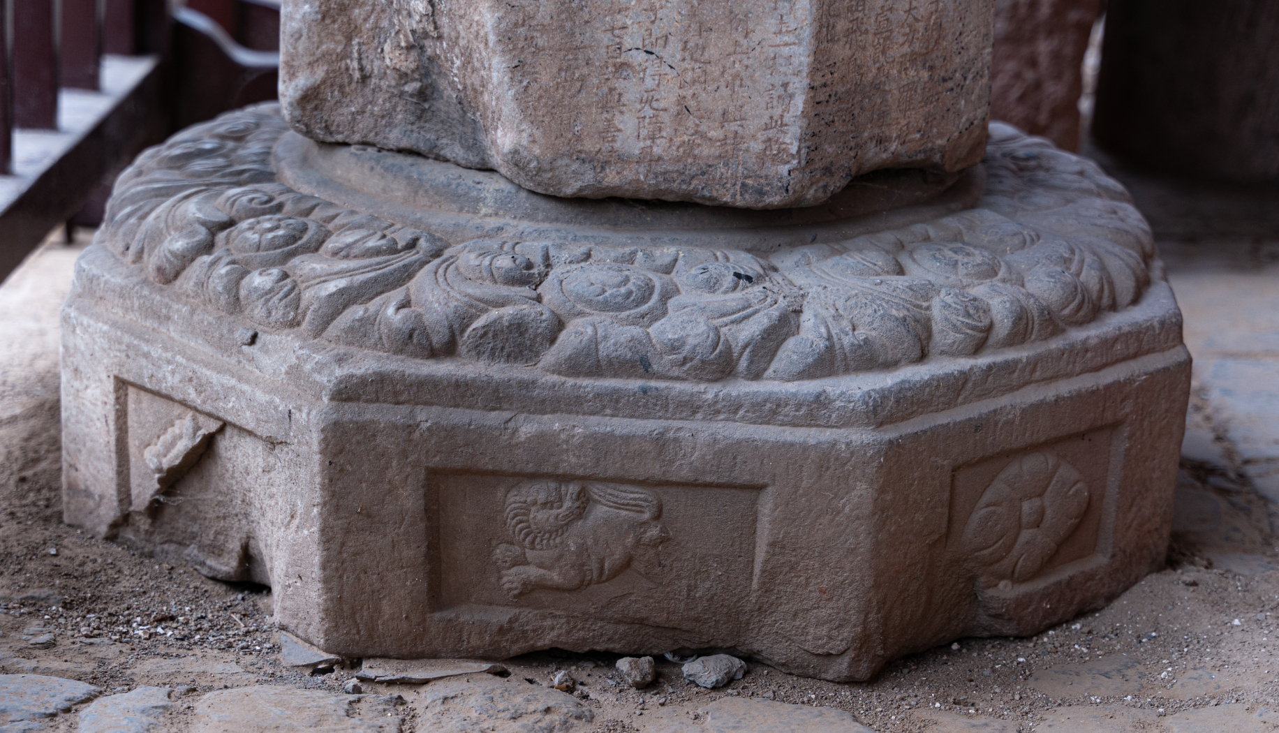 经幢底座装饰良苕纹,四个侧边装饰跑狮,其他四个侧边则装饰四瓣花形图案,皆颇有唐风。