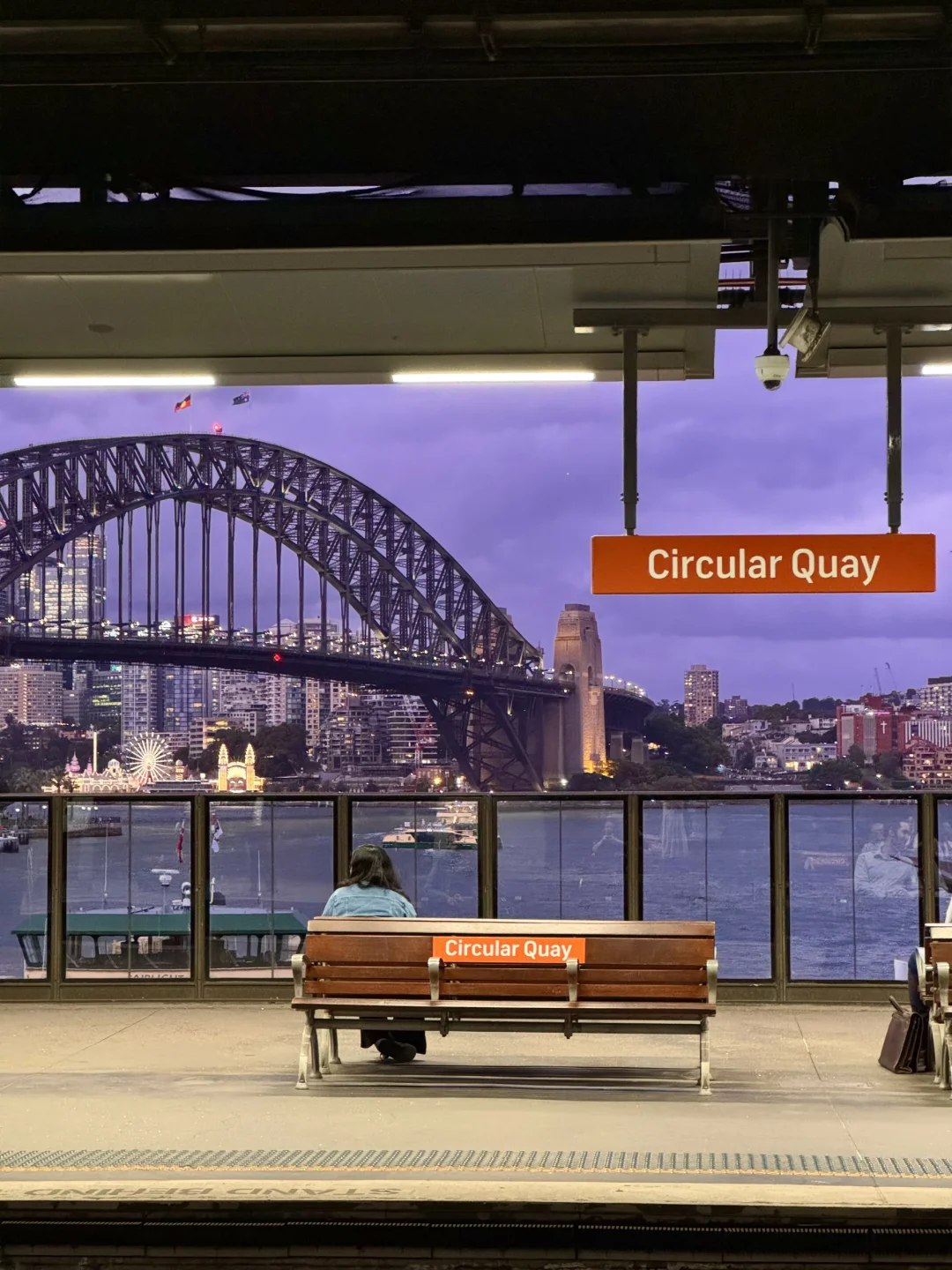 这里真的是我去过最美的地铁站,车站背景就是海港大桥,蓝调的时候外面灯亮起来时仿佛走进了电影画面!