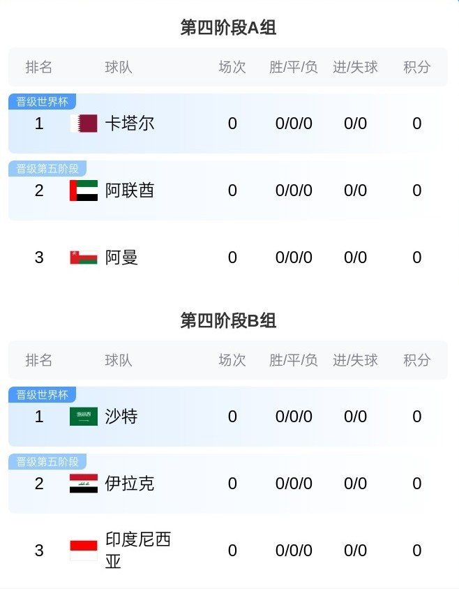 直播吧10月8日讯世预赛亚洲区进入第四阶段,6支球队将在接下来8天争夺2个直通名额。而在没有透露任何选择标准的情况下,亚足联将第四阶段比赛主办权交给了卡塔尔足协与沙特足协,这让其他参赛球队非常困惑。