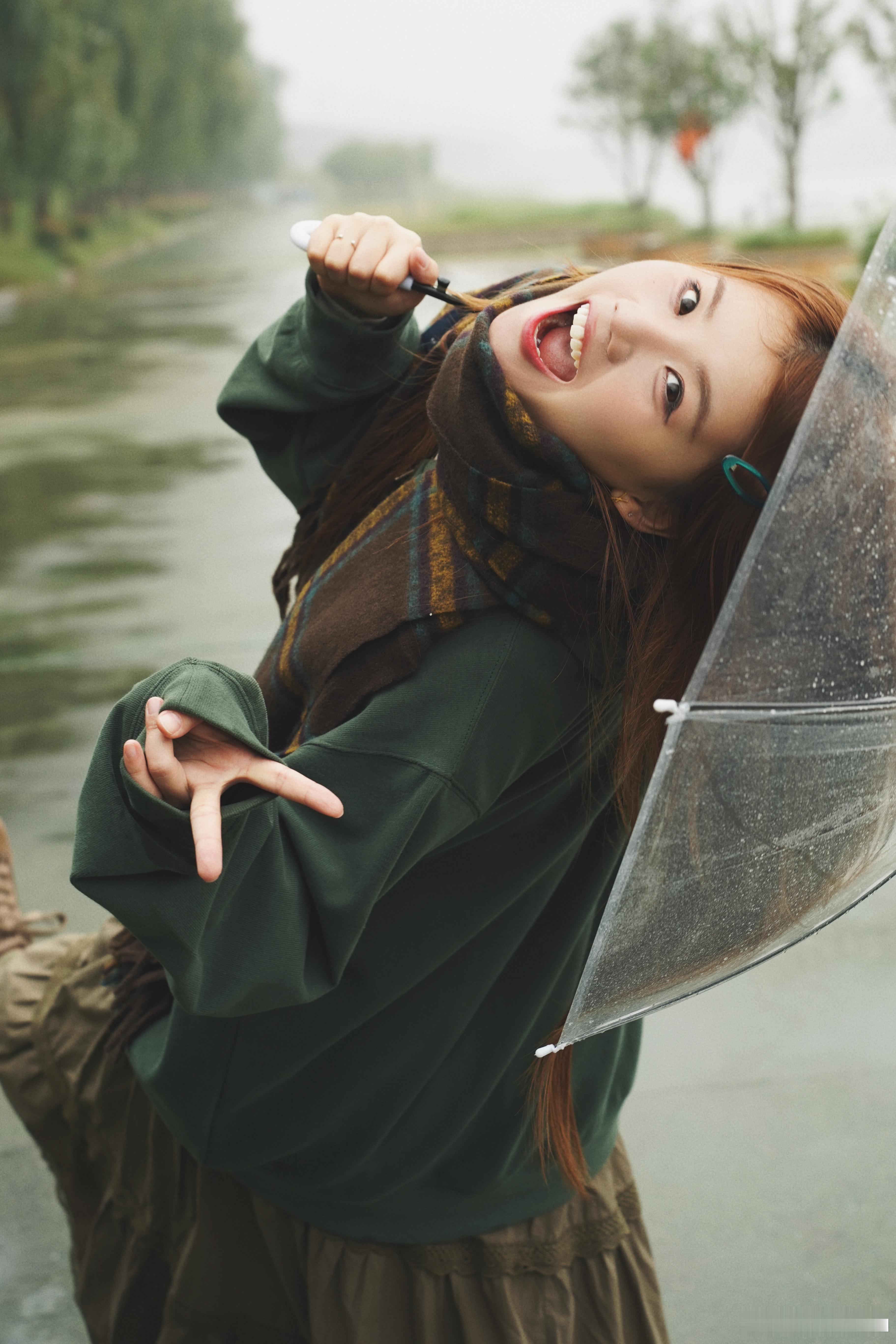 下雨天跟透明雨伞很配[老师爱你]