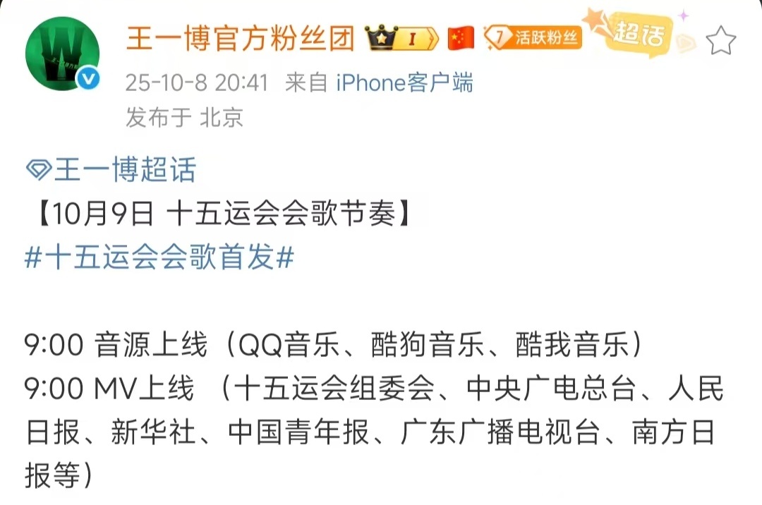 王一博好事连连[手指比心]今天刚刚赛车拿了亚军,明天又要发新歌了,十五运会会歌!