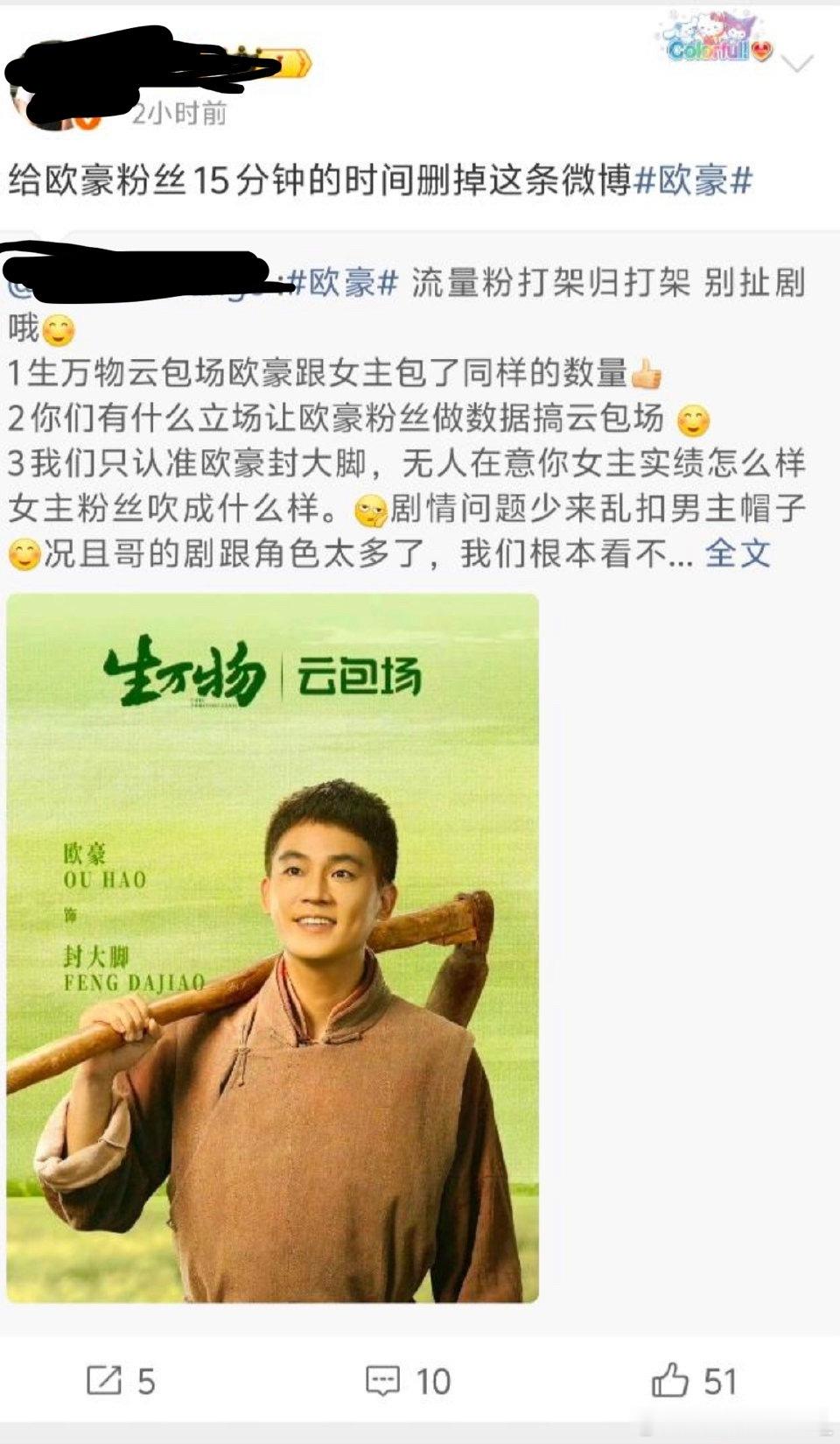 蚌埠住了,给欧豪粉丝15分钟删除这条微博