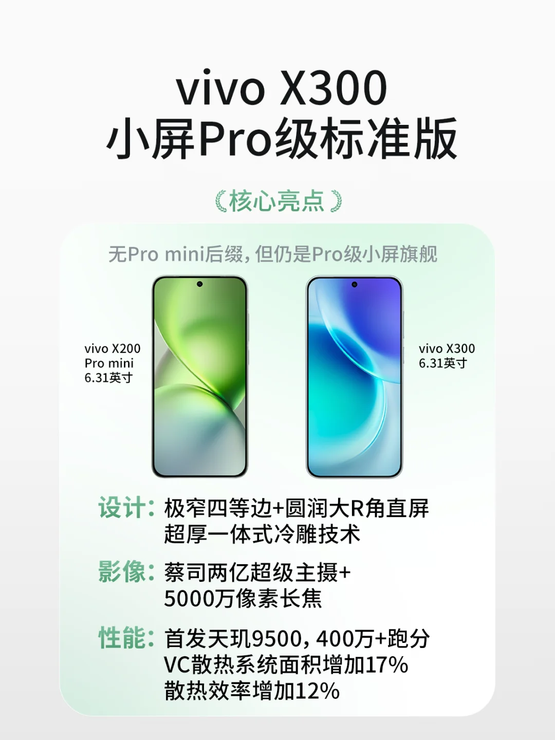 首先X300标准版虽然没带 “Pro mini” 后缀,但确定是 X200 Pro mini 的正统继任者。