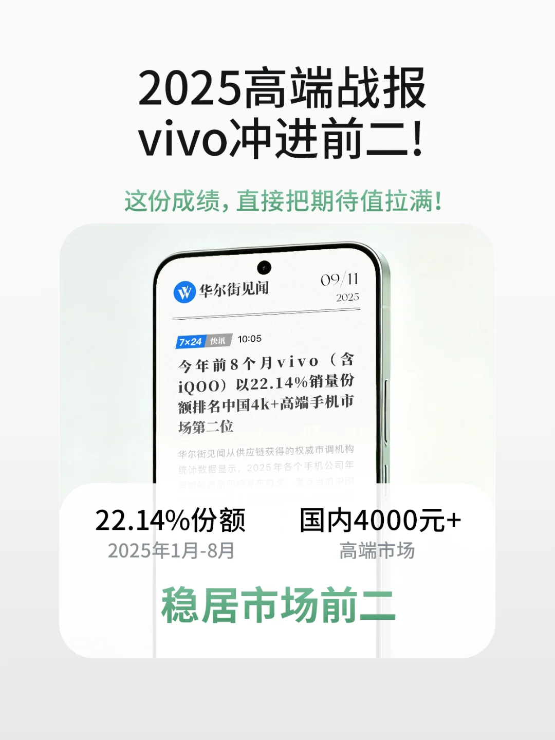 不止单周表现,今年 1-8 月的高端市场数据也值得提:4000 元及以上价位段,vivo 以 22.14% 的份额稳住前二,也是目前国产手机厂商为数不多冲高成功的品牌了。