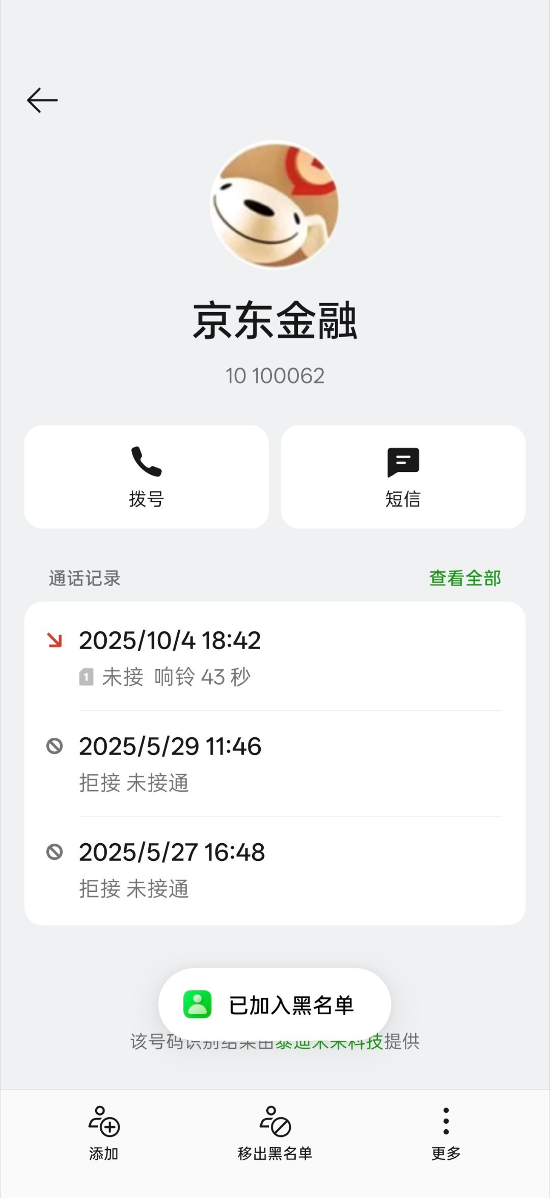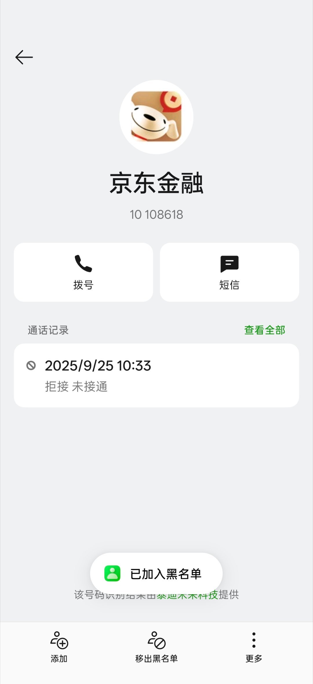 拉黑了京东金融客服电话,还不只是一个,换着号码打。