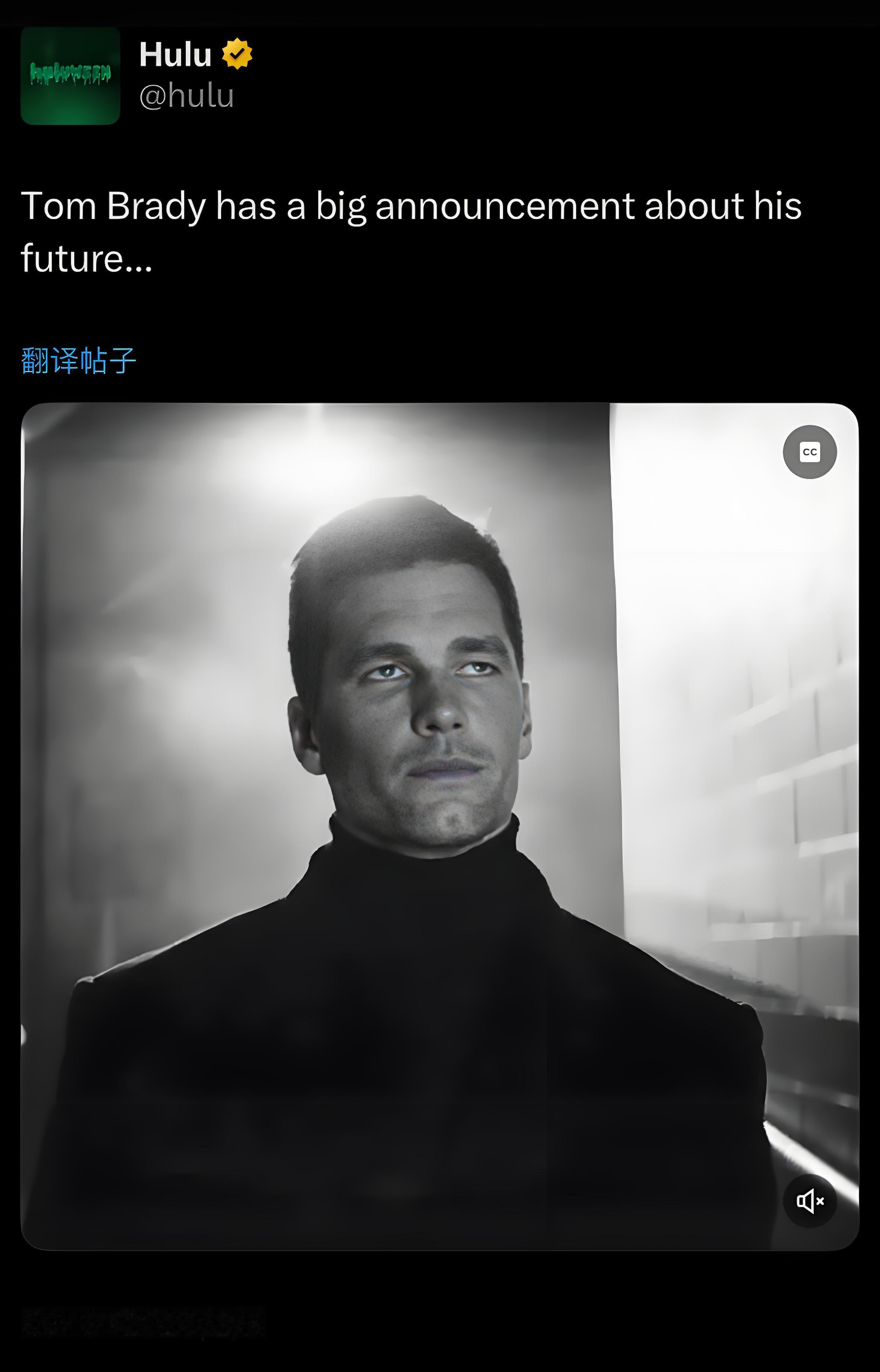 2020年超级碗LIV期间,Hulu播出了一则由汤姆-布拉迪主演的广告,标题为“布拉迪对他的未来有一个重要事情宣布…(Tom Brady has a big announcement about his future)”
