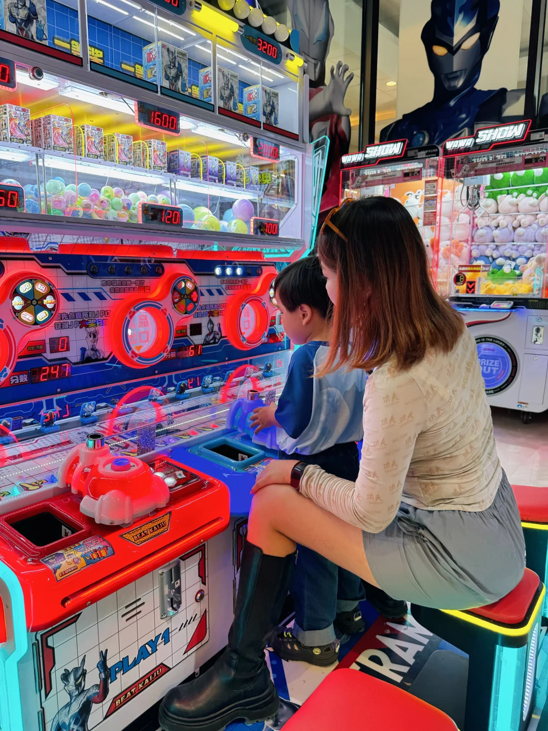 进门先冲主题游戏机台,操作超带感,仿佛自己真的在和奥特曼并肩作战!旁边还有专属合影打卡区,随便一拍都是氛围感大.片,朋友圈C位稳了。
