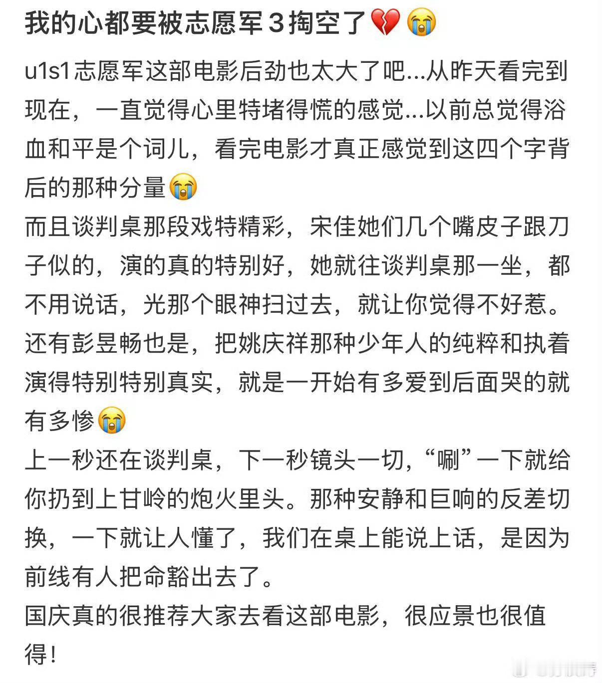 张子枫宋佳新片里都有意难平他们把HE留给我们,把BE刻进历史。李晓苦等70年未果,林月明未能归家抱子,黄继光永远写不完那封家书…《志愿军》用十大意难平告诉我们:今日万家灯火,皆是先烈以愿未酬、以命点燃。
