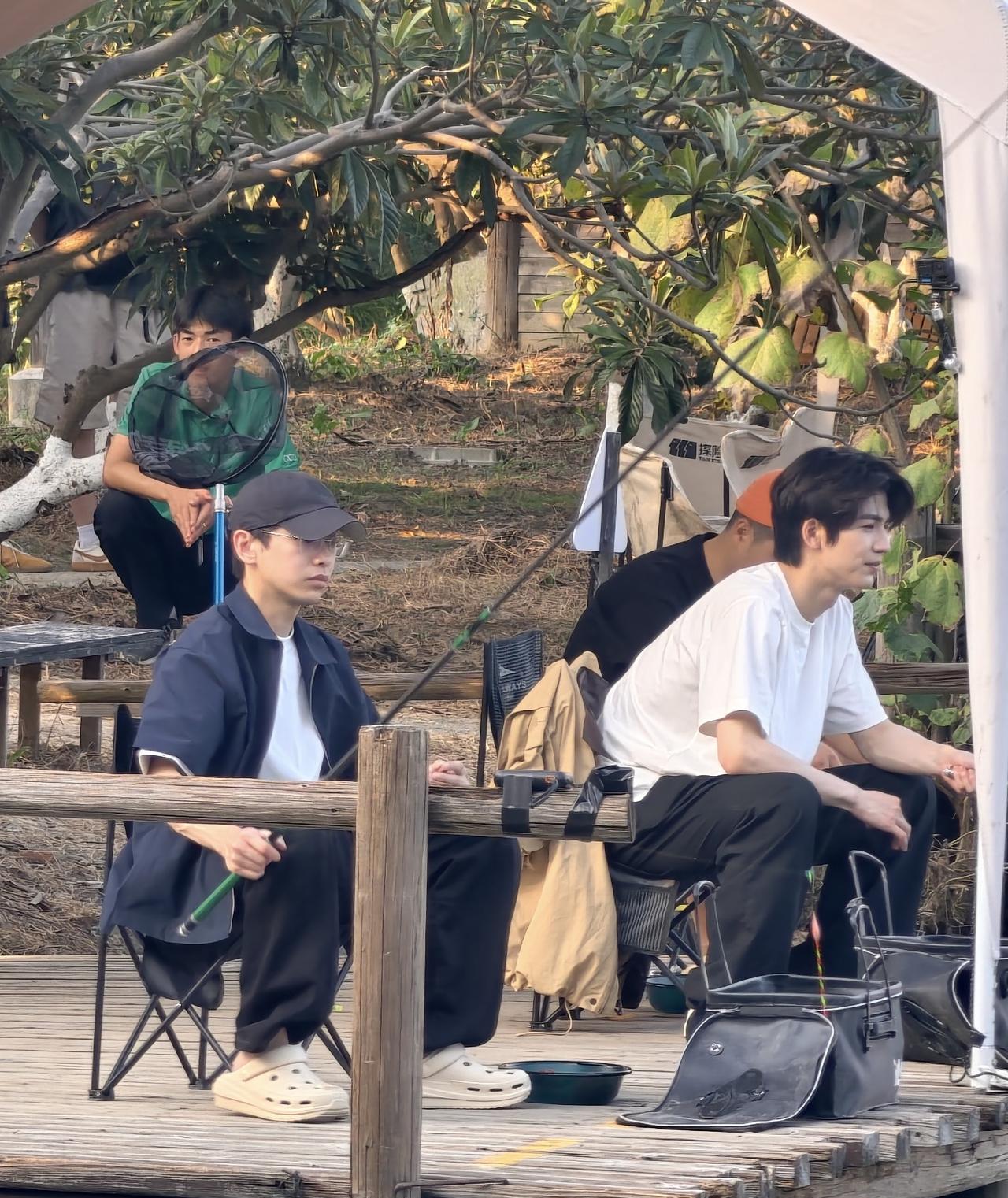 10月8日,有位网友在乌镇偶遇彭昱畅,他与张凌赫、马頔坐在那里钓鱼的画面。 彭彭