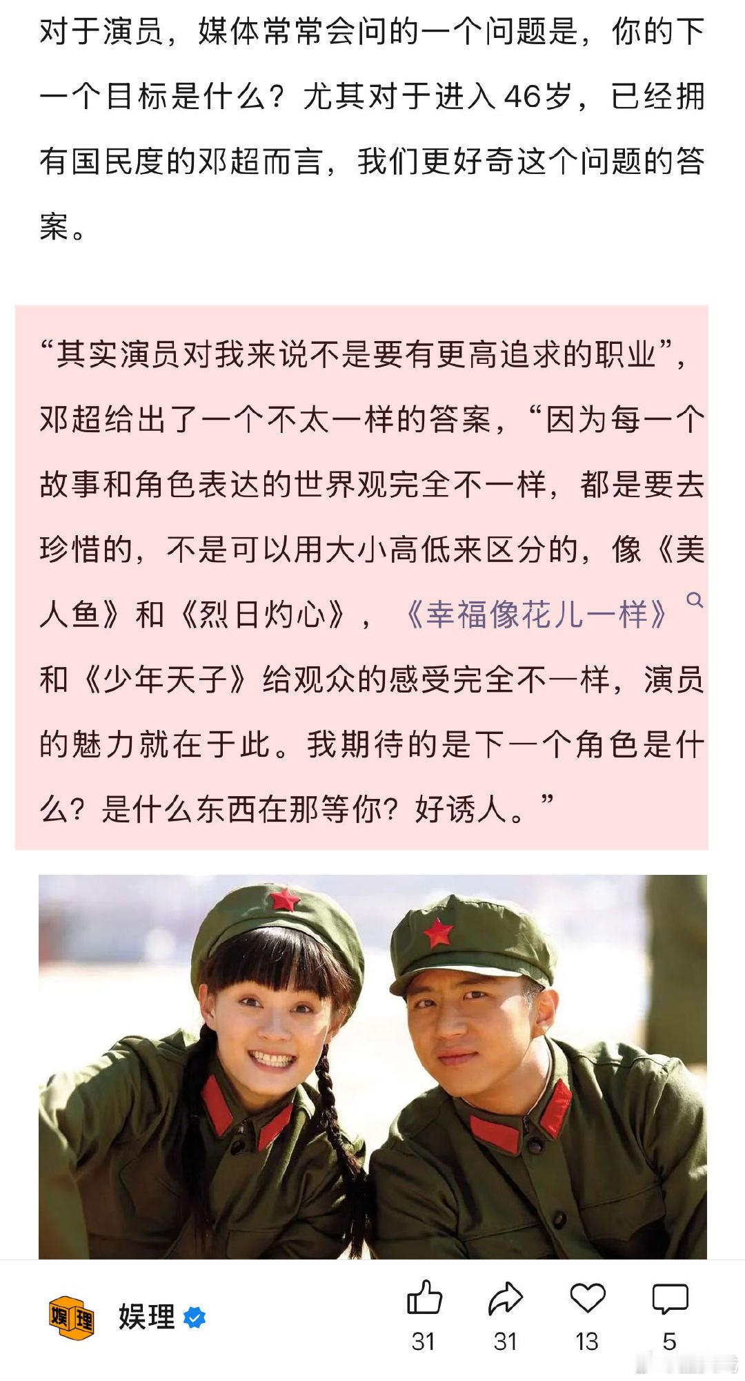 邓超说孙俪是自己的老师 邓超演赤发鬼难到掉头发 谈及综艺明星与电影演员身份会不会冲突的问题,并不避讳。“我想要更多元化的更大的舞台,可能每个人看法不一样,或者有人在意颁奖、在意排列顺序,所以才会造成某一种说法,但是我们可以有新的说法…我好奇真人秀是什么?我就去做了。但其实我一共也就做了两个真人秀而已。”娱理独家↓