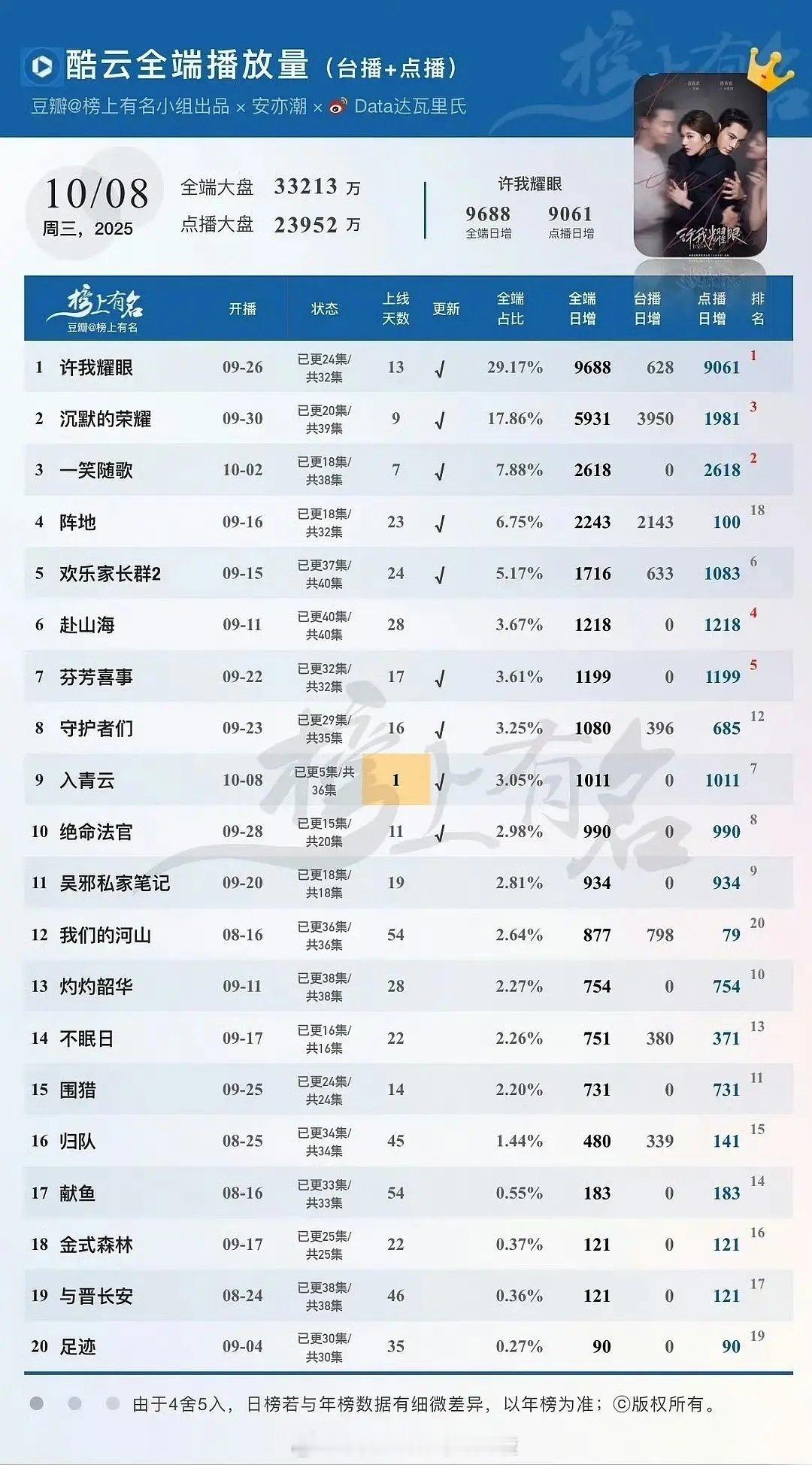 大胆猜测,《入青云》应该火不了,不是因为赵露思的《许我耀眼》播得太好了,也不是因