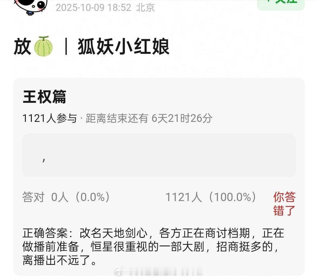 成毅、李一桐《天地剑心》暂定10月底播出,瓜主爆料招商挺多,恒星很重视。狐妖王权
