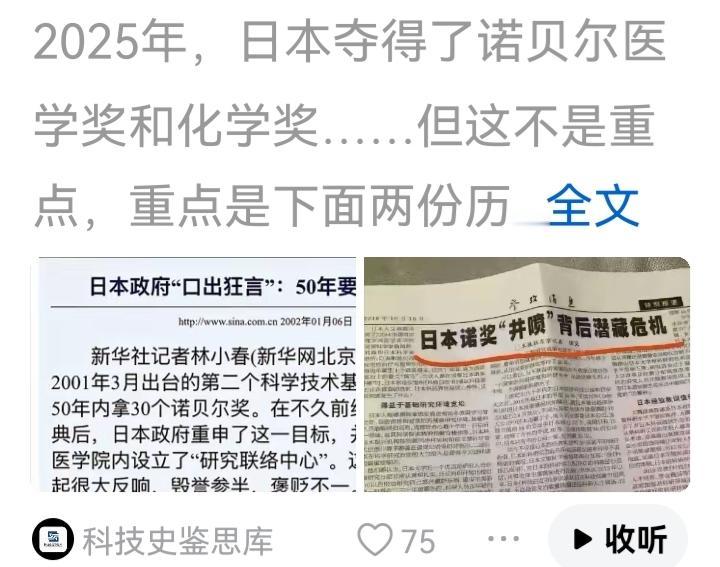 日本2002年“口出狂言”宣称50年拿30个诺奖。现在,时间过了快一半了,不知任务过半了没有?没有精钢钻,也揽磁器活,会被人笑话的。