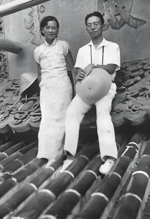 图3:1935年身着旗袍的林徽音与梁思成在天坛祈年殿徒匾下