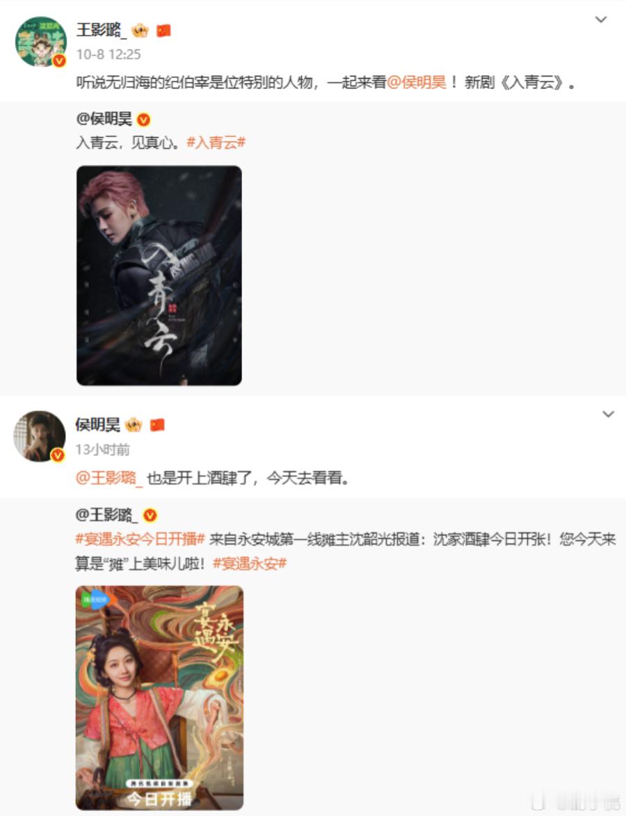 冯宝宝王也你们不要再打了 他俩还真是怪有意思的,同时段的剧宣里都能这样,不过话说回来这次的角色都让人眼前一亮,必须看起来