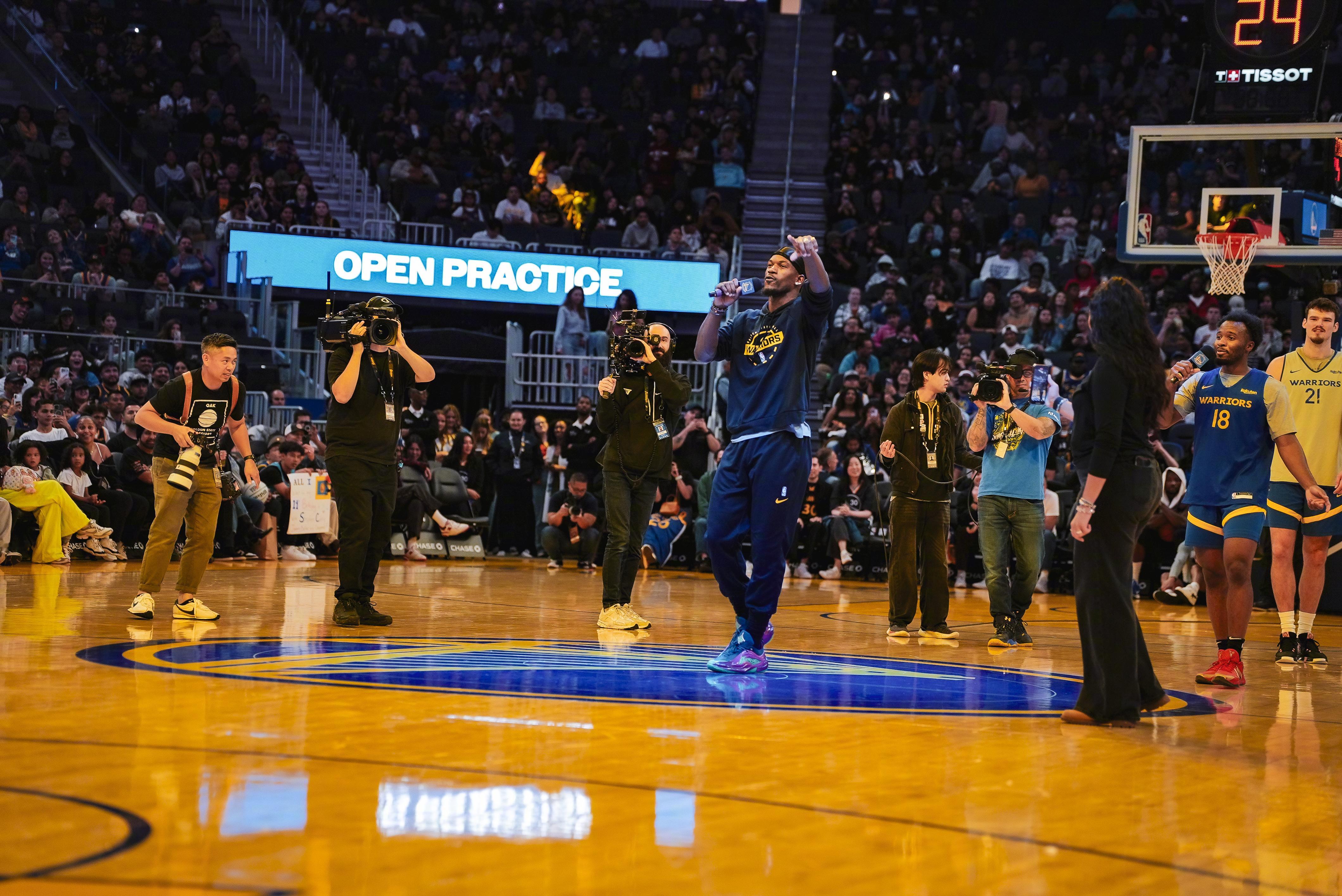 唱到哪了这么high!勇士公开训练