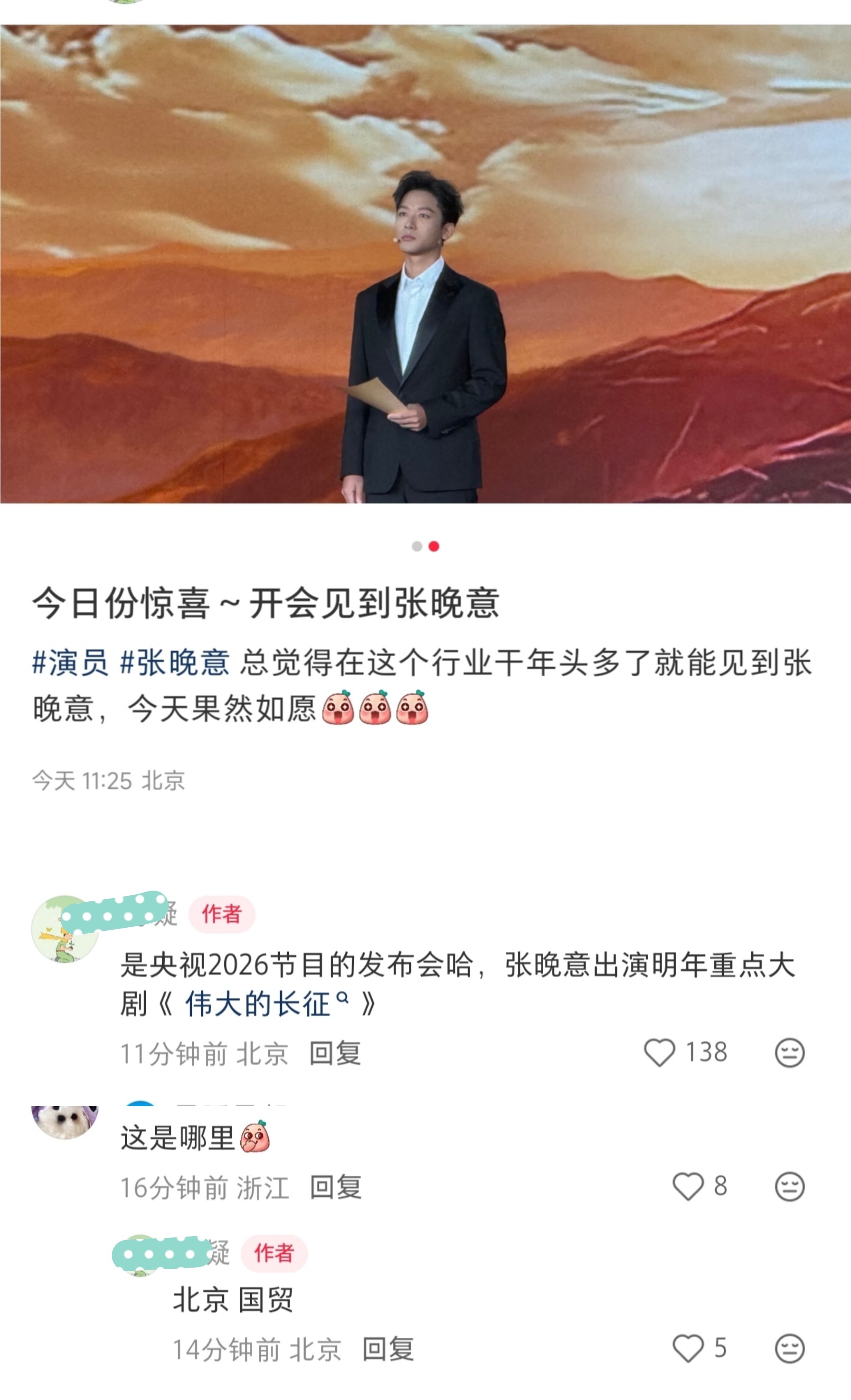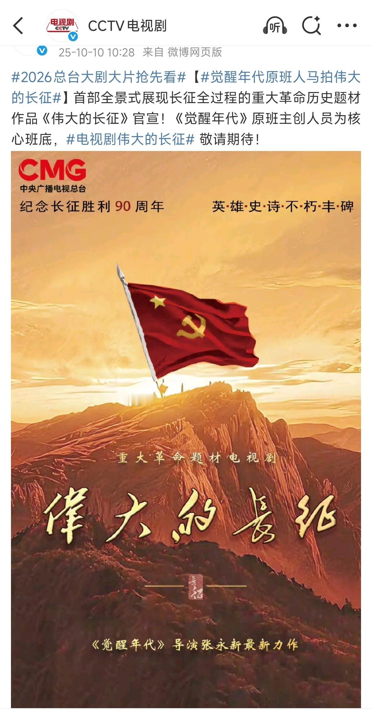 2026总台大剧片单张晚意今天参加央视2026节目的发布会,宣传总台明年的重点大剧《伟大的长征》,是觉醒年代的原班人马哦,张晚意🐮