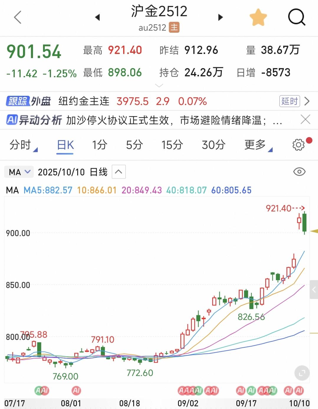加沙停火协议正式生效,市场避险情绪降温,出现回落行情。 但市场基本面不改,美国降息预期等因素,预计黄金会迎来短期回落,但中长期行情不变,黄金到不了崩盘的时候。 黄金什么时候崩盘黄金 黄金期货