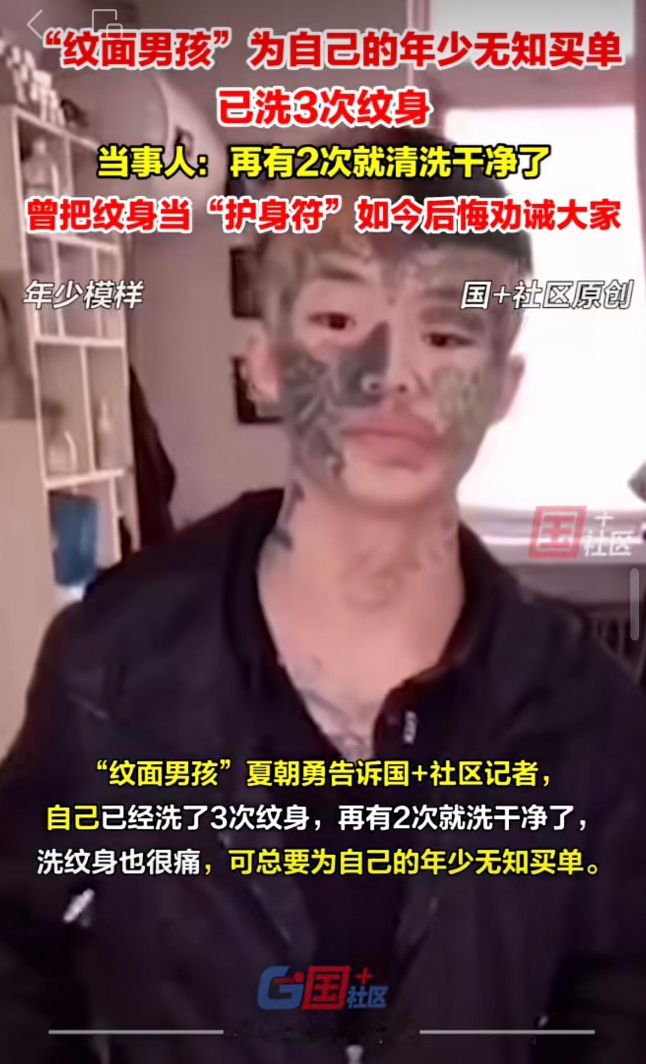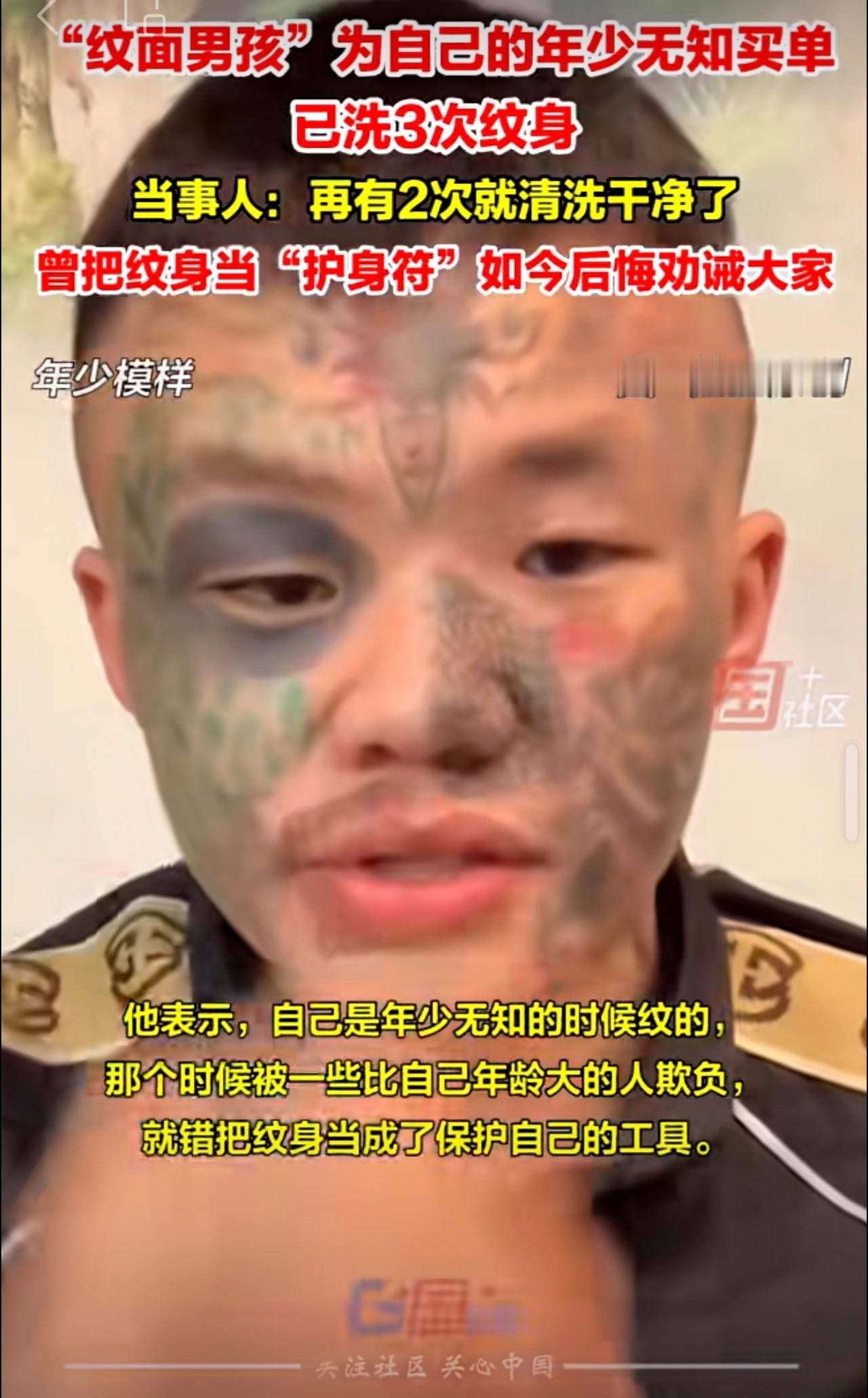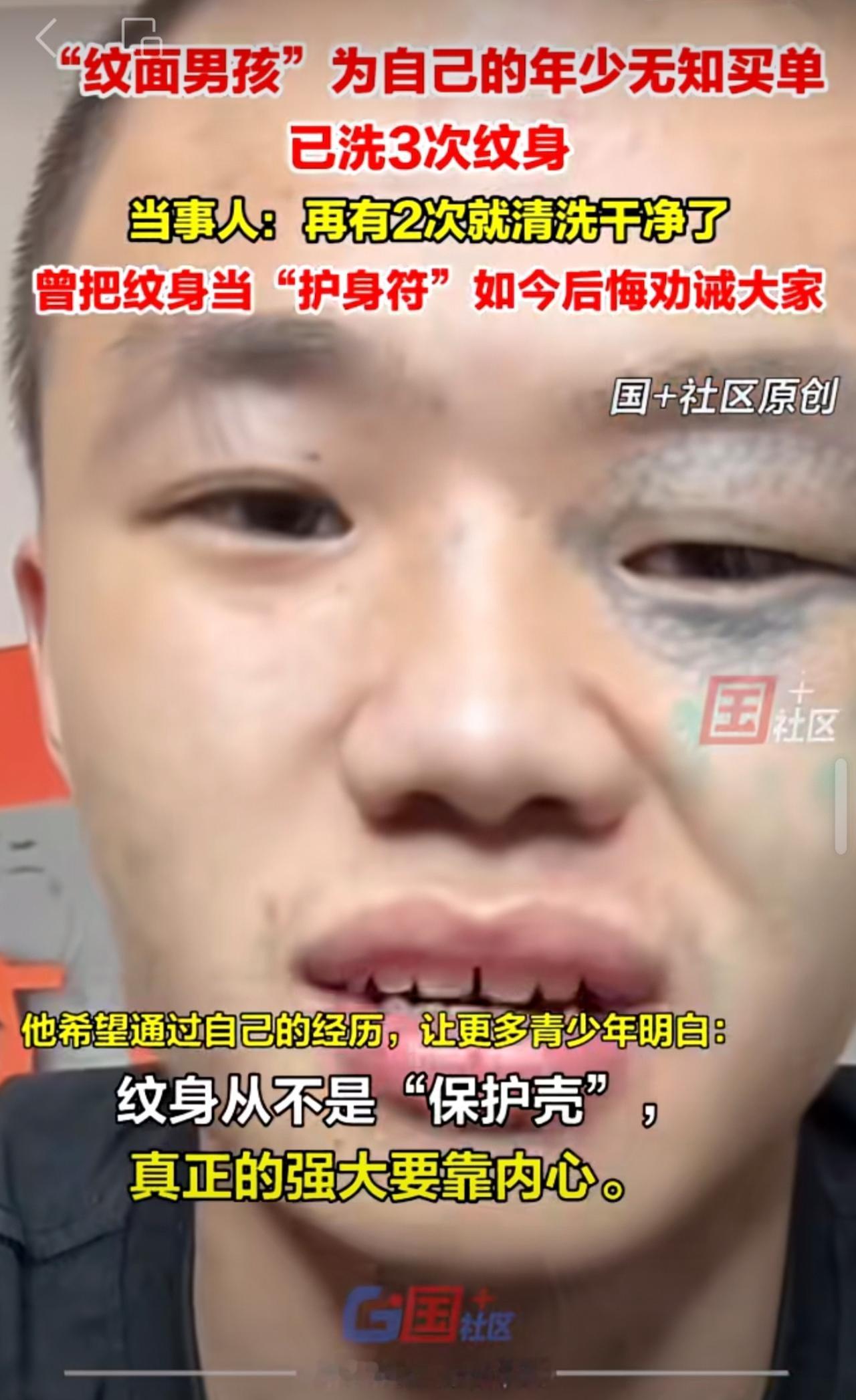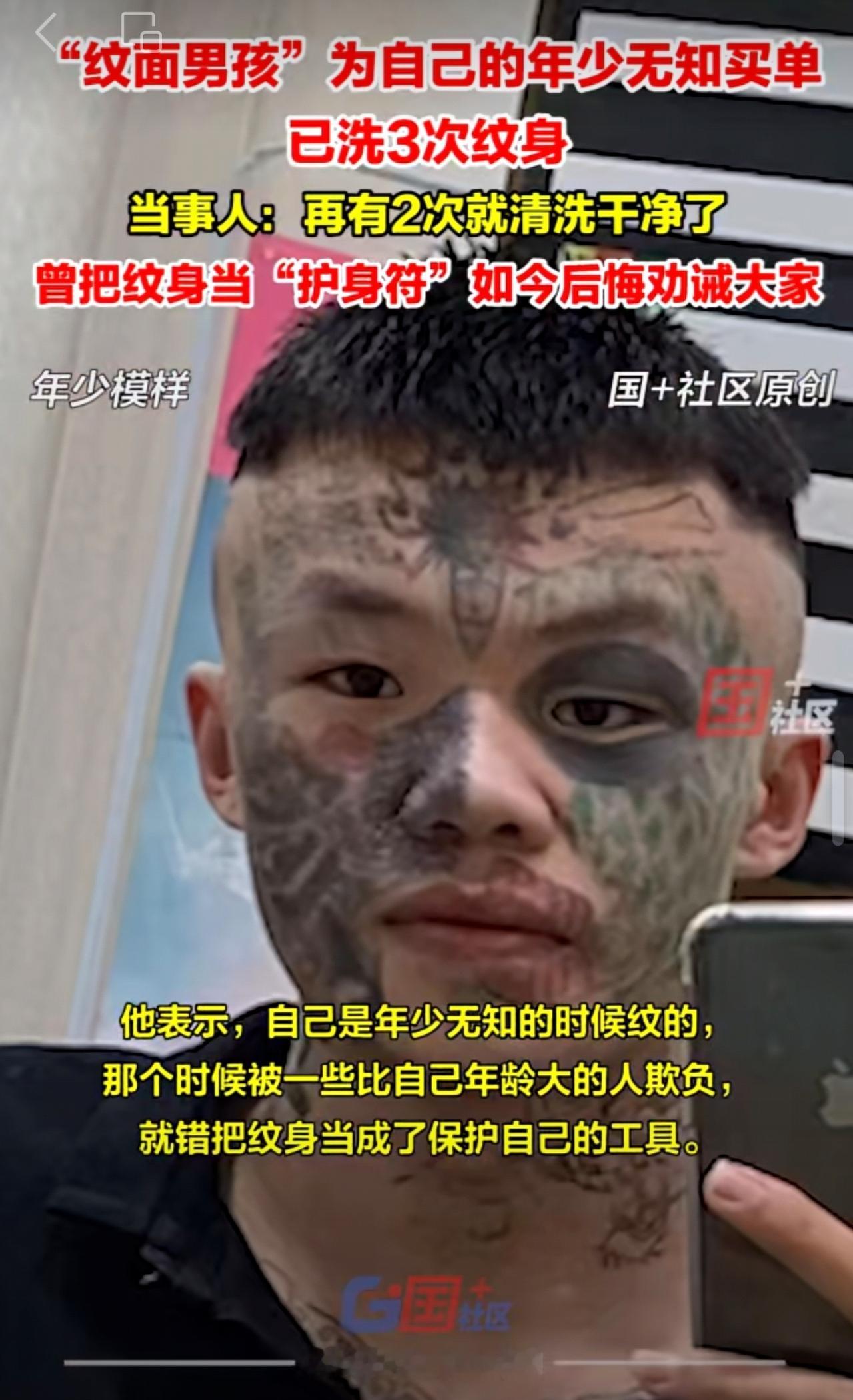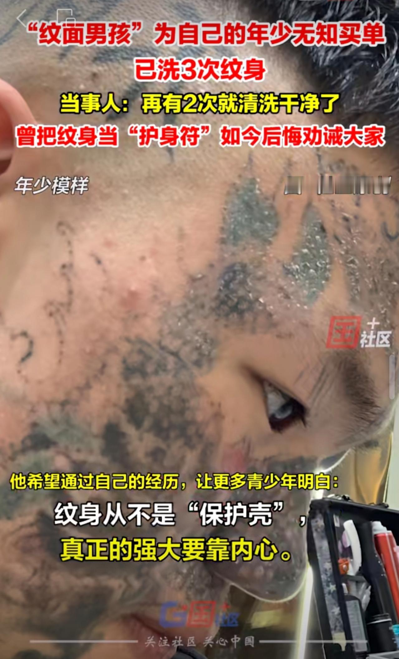 10月10日,“纹面男孩”洗纹赎“年少错”:已经洗了3次纹身,再有2次就洗干净了。希望通过自己的经历,让更多青少年明白,别让一时的“想保护自己”,变成一辈子的“想洗掉自己”。