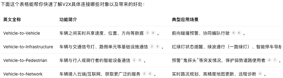 V2X是一套对车辆与周围一切事物进行信息交换的“对话”系统。看图二,V2X可以与红绿灯,智能设备,其他汽车之间进行通讯,让车辆具有超视距的能力,提高行车安全。