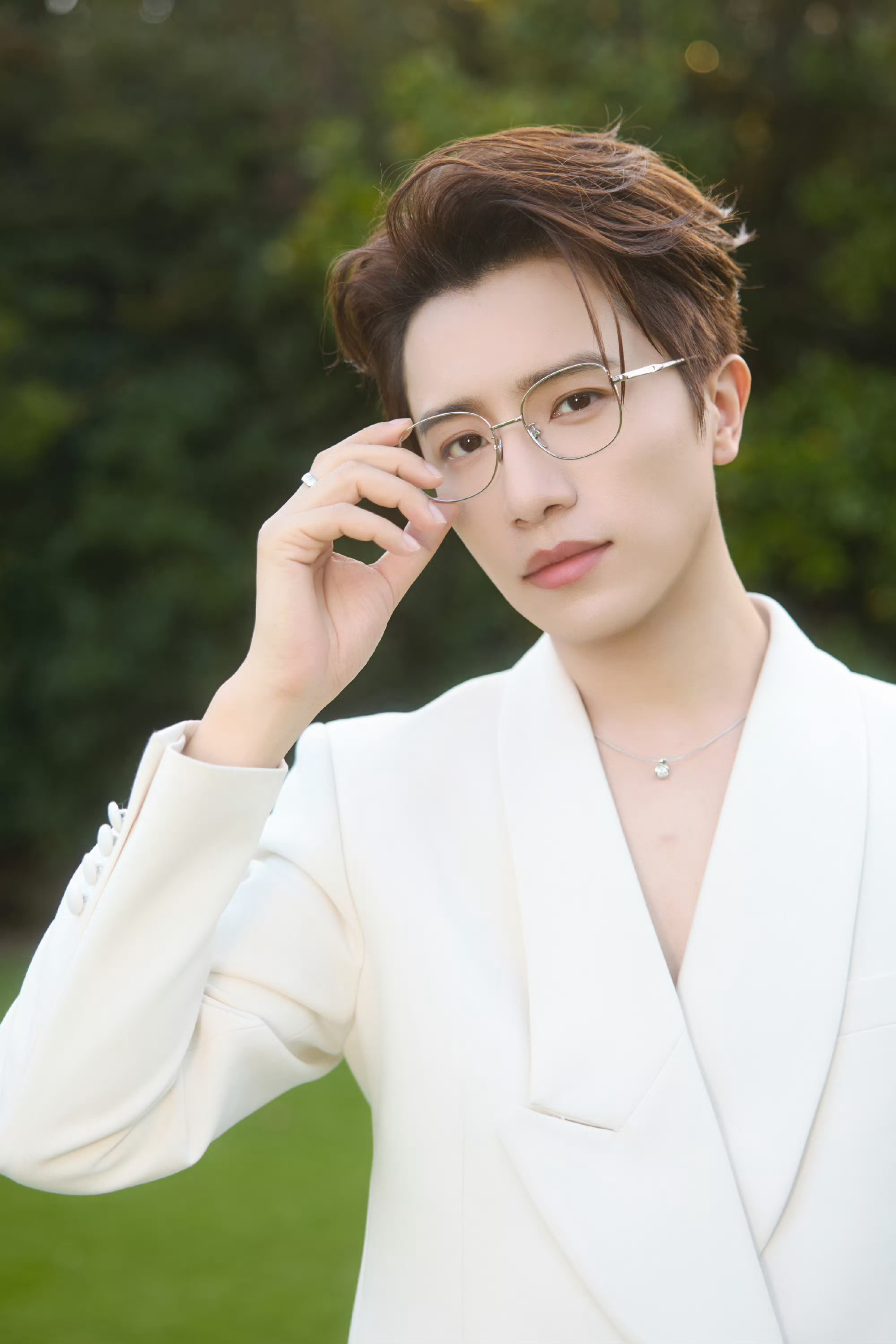 伯远银框眼镜白西装好可 伯远银框眼镜+白西装,清新又显质感!