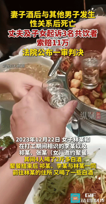 “这就是出轨的代价吗?”女子晚上与朋友聚餐后,与其中一名男子发生了性关系。谁知第二天一早,该女子竟然死了。女子丈夫得知消息后,事后与子女一起起诉三名共饮者,要求索赔11万元,而法院的判决让人意外! 来源:【纵览新闻】 2023年12月22日,林美丽(化名)与李某打工期间相识,而祁某、张某与林美丽则是经他人介绍认识! 当天,林美丽和李某以撮合祁某与张某为名,邀请四人在一家饭馆聚餐! 聚餐持续了相当长的时间,四人共同饮用超过两斤白酒,饮酒量已不算少。然而聚餐结束后,祁某、李某与林美丽意犹未尽,又一同前往林美丽的住所继续饮酒! 当晚11点左右,祁某独自离开林美丽的住所,李某留在住所与林美丽发生了性关系。事后,李某起床喝水后独自在客厅沙发入睡,直到次日凌晨才发现林美丽状态异常! 发现林美丽死亡后,李某用她的手机通知了其家属。家属赶到现场后立即报警,派出所民警查看现场后,对李某等人做了笔录,并让李某等人与林美丽家属就赔偿事宜进行协商! 最后,李某向林美丽丈夫赵某支付了补偿款5万元,并出具了5万元的欠条! 祁某向赵某支付了补偿款2万元,出具3万元的欠条。张某向赵某支付了补偿款2.05万元,出具3万元的欠条。三人共计支付补偿款9万余元以及共11万元的欠条! 然而,后续补偿款并未完全支付,林美丽的丈夫及子女将三名共饮者诉至法院,索赔11万元及利息! 原告方认为,三名被告作为共同饮酒者,应当对林美丽的死亡承担相应的赔偿责任。 法院经审理认为,张某在与林美丽聚餐饮酒的过程中不存在劝酒行为,聚餐结束后乘车自行回家,对林美丽死亡不存在过错! 祁某在与林美丽聚餐饮酒的过程中同样不存在劝酒行为,聚餐结束后与李某一同将林美丽送回住所,虽在其住所处与李某有饮酒行为,但未对林美丽实施劝酒。 法院认为,祁某在林美丽死亡后已尽到合理注意义务和人道主义关怀,不具有过错行为。 除此之外,法院重点对李某的责任进行了认定。 法院指出,虽然李某在与林美丽聚餐饮酒的过程中不存在劝酒行为,聚餐结束后与祁某一同将林美丽送回住所,但因李某与林美丽存在特殊男女关系,当晚酒后与林美丽共同居住并与其发生性关系! 法院认为,李某在与林美丽同住期间未尽到相应的注意义务,负有一定的过错责任。 与此同时,法院明确认定,林美丽明知自己患有疾病还依然与李某、祁某、张某聚餐饮酒,且与李某发生性关系,对自身死亡负有直接责任。 综合全案事实及相关证据,法院最终判令李某一次性赔付补偿金、丧葬费2万元。驳回了原告对张某和祁某的赔偿请求,也意味着林美丽自身承担了主要责任! 不得不说,法院的判决还是很公正的。毕竟林美丽自身都明白自己的疾病,还外出饮酒,更过分的是她还违背了道德,明知自己已经有家庭,有丈夫,有孩子了,还与他人做出此等伤风败俗的事情,如果不是背着丈夫做这种事情,或许就不是这样的结局,最后落得这这种结果,也算是她为自己的行为买单了! 通过此事,也再次劝诫大家:小酌怡情,大酌伤身,饮酒还是适量吧!