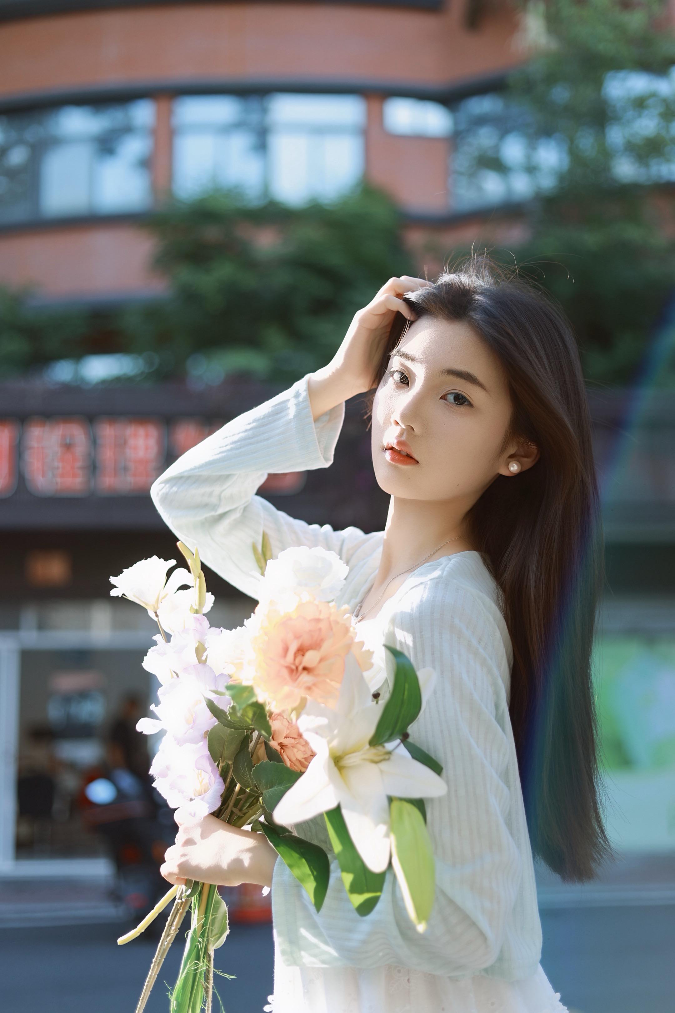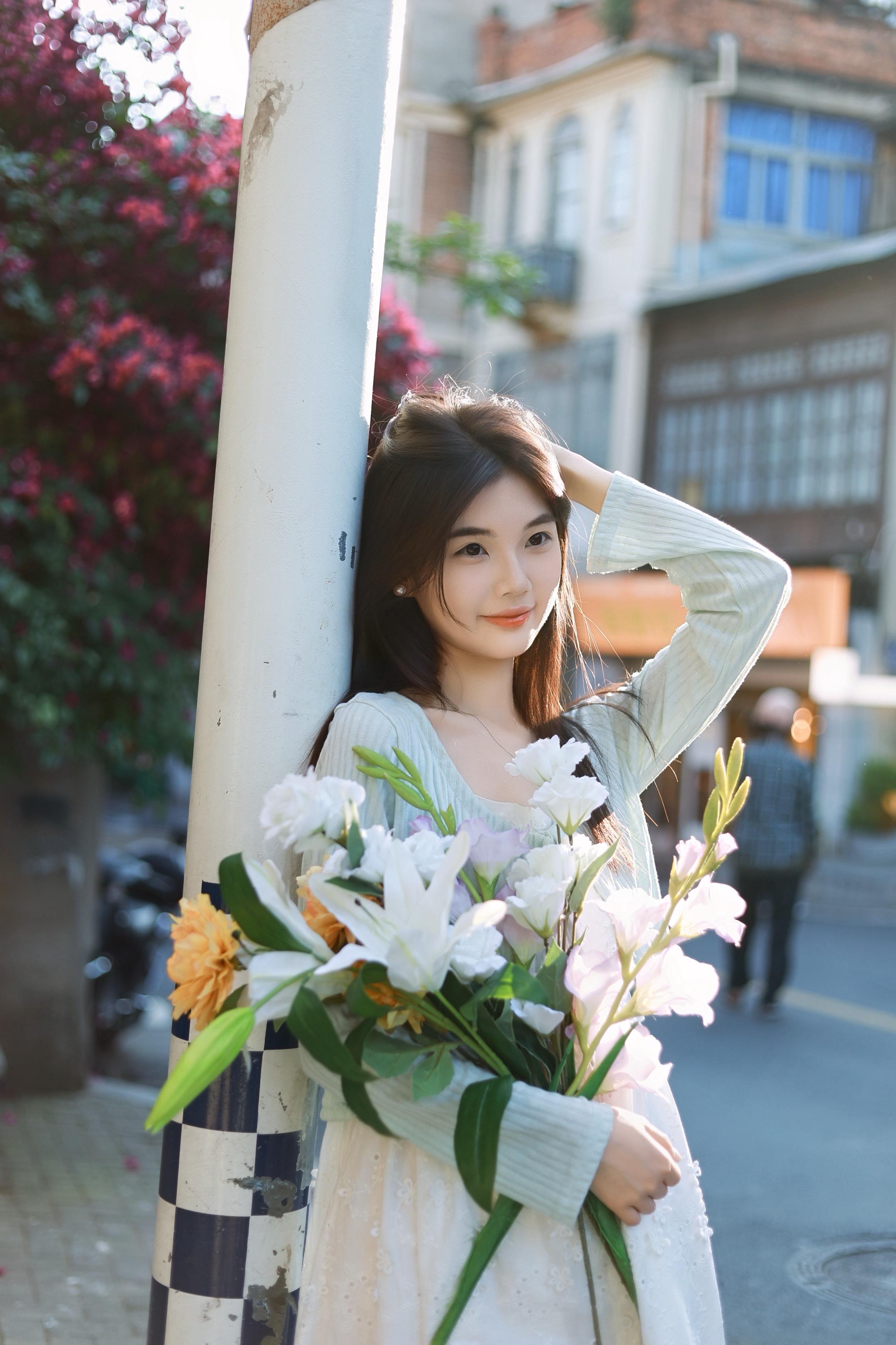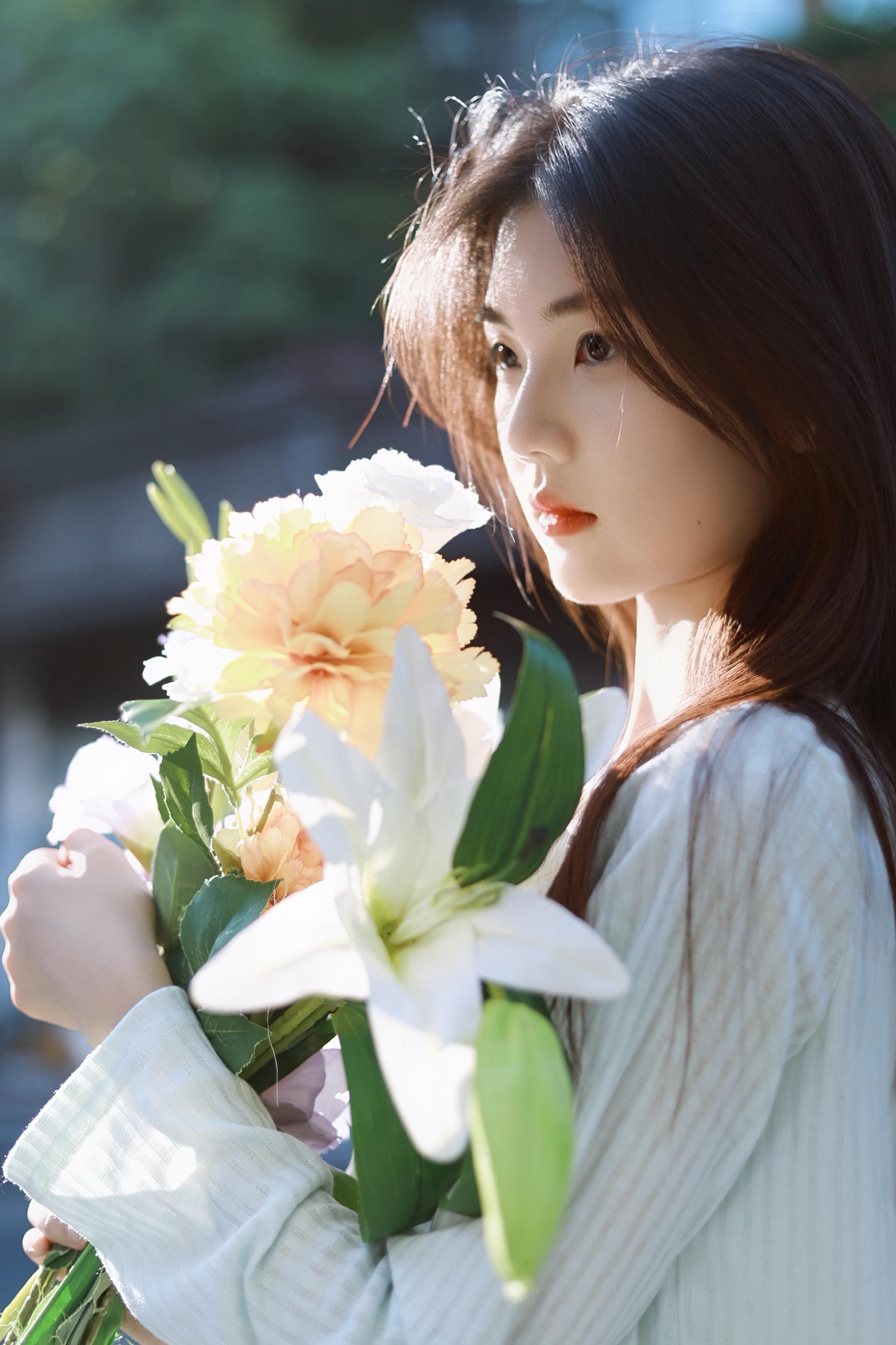 当阳光洒在身上,抱着花束的那一刻,突然明白:幸福不过是这样简单又美好的瞬间~
