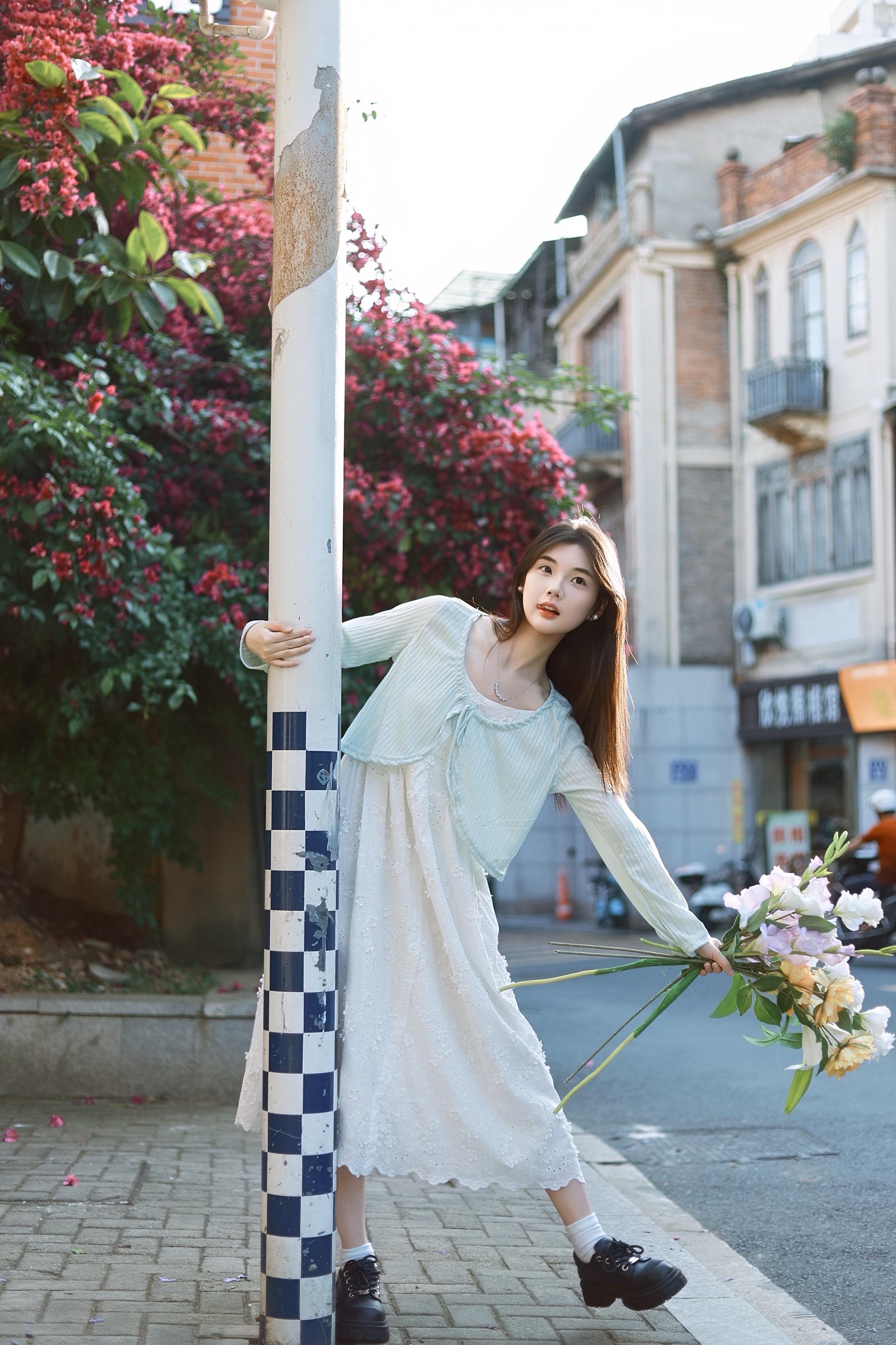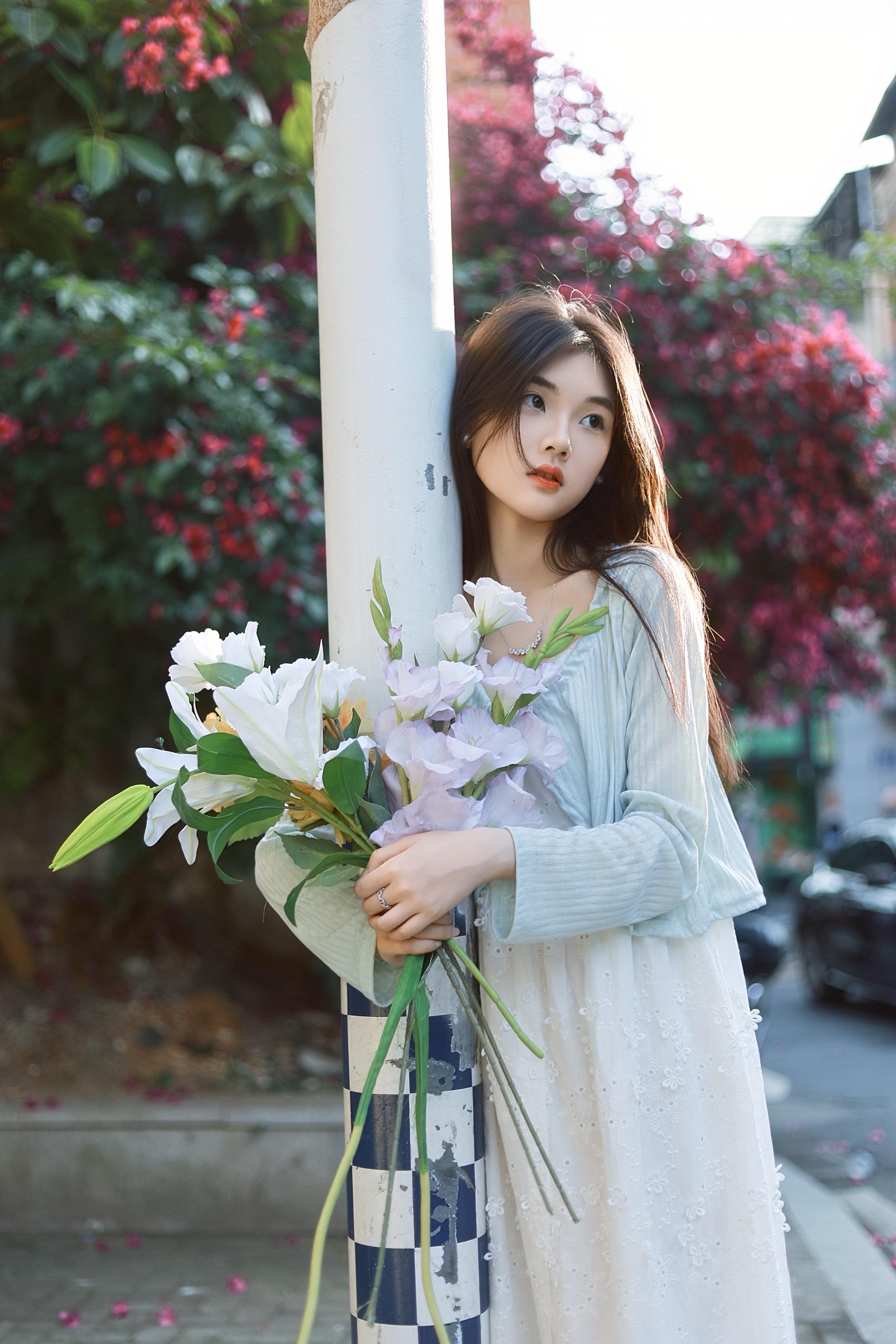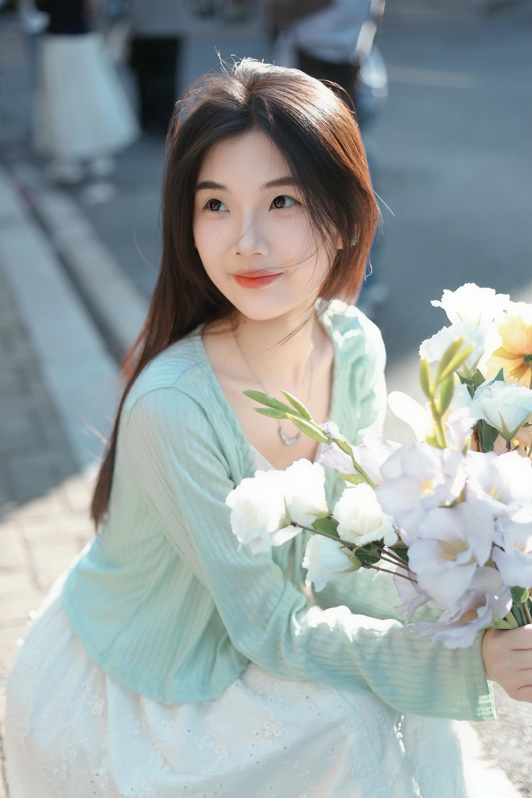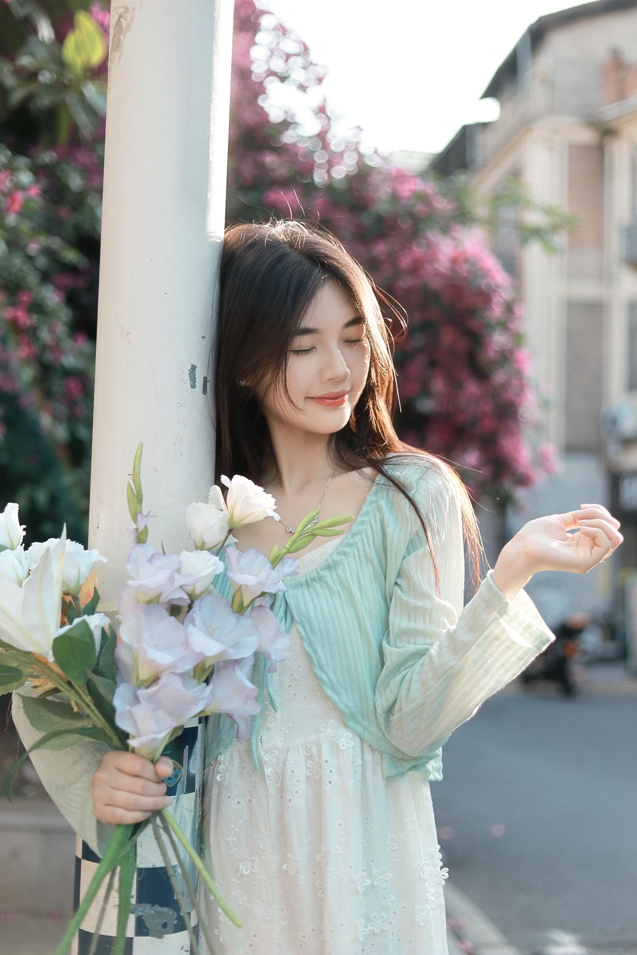 当阳光洒在身上,抱着花束的那一刻,突然明白:幸福不过是这样简单又美好的瞬间~