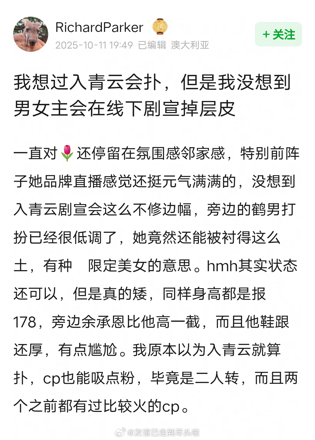 网友说入青云无效剧宣,焦点都在侯明昊的身高和卢昱晓的妆造上。。。