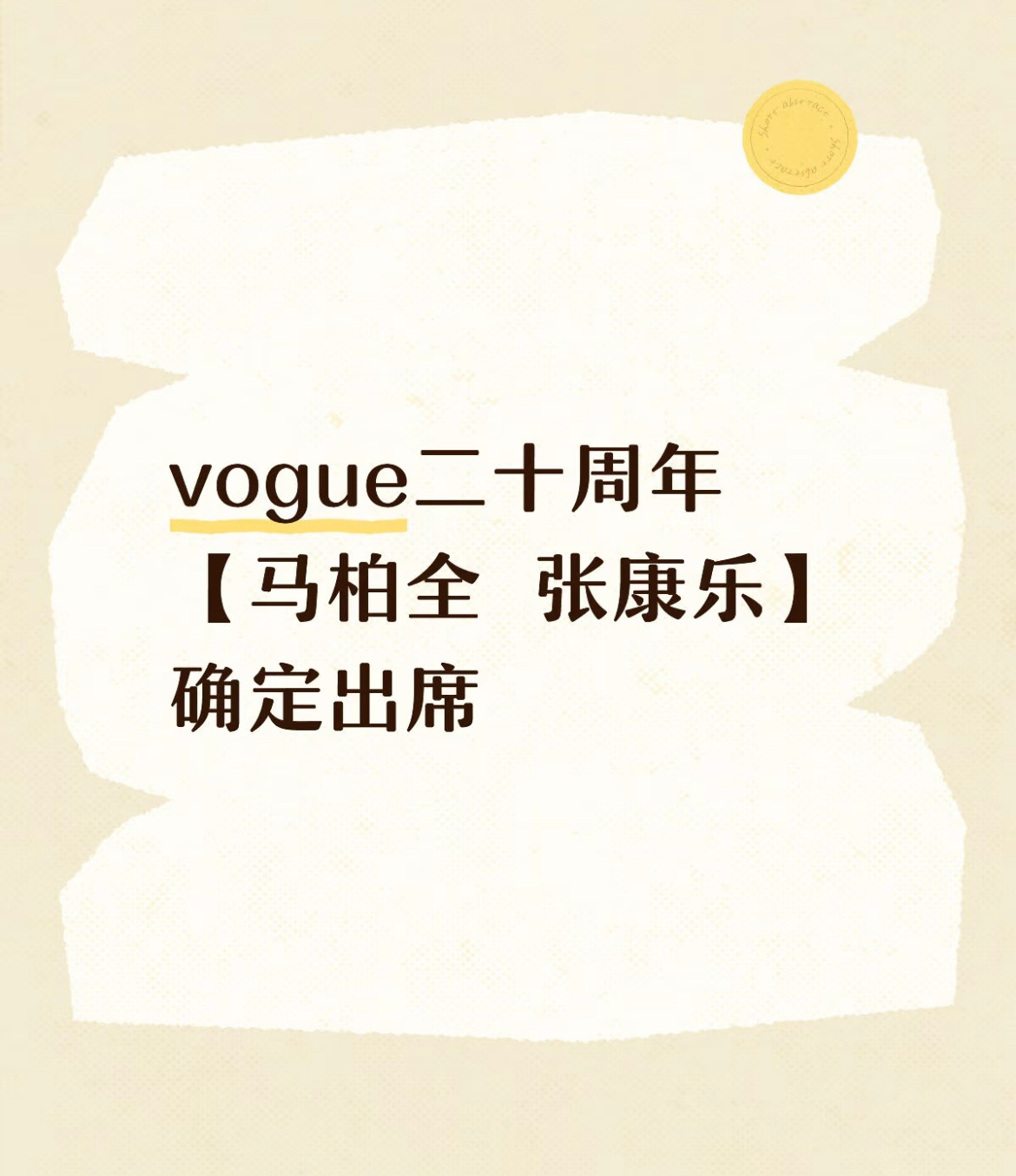 网传张康乐马柏全出席vogue盛典 网传vogue二十周年盛典,张康乐、马柏全确定出席,即将官宣! ​​​