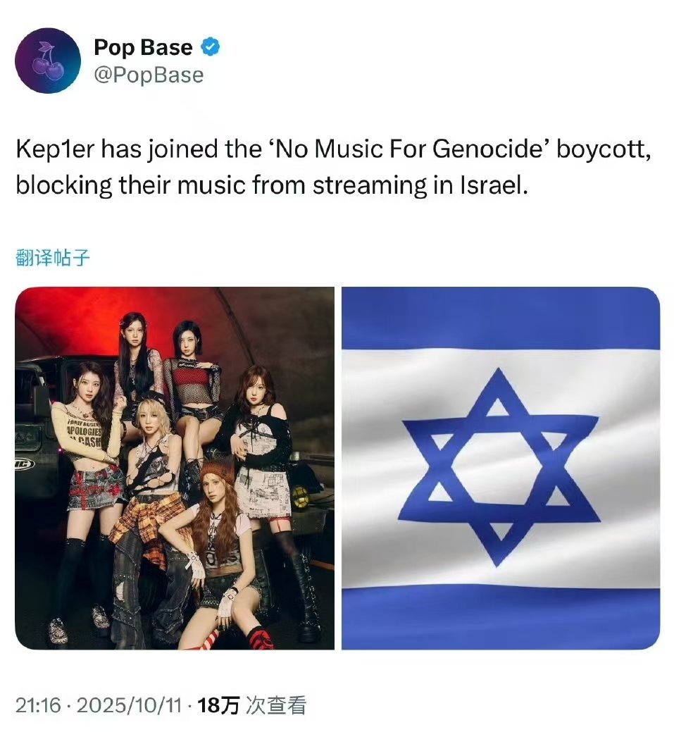 Kep1er加入禁止种族灭绝音乐活动Kep1er禁止其音乐在以色列播放好有态度啊