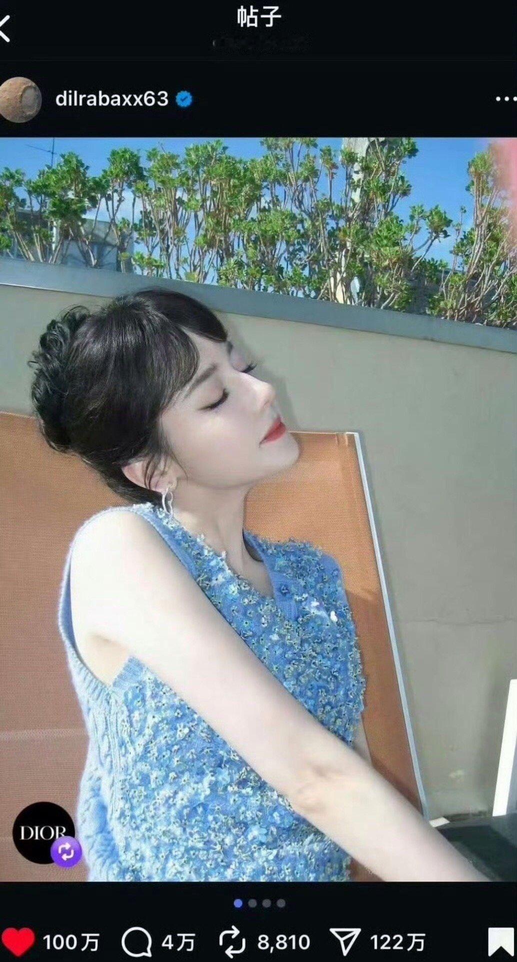 迪丽热巴ins点赞转发破百万年更女顶第一个百万点赞ins来了,热巴外网也好火!