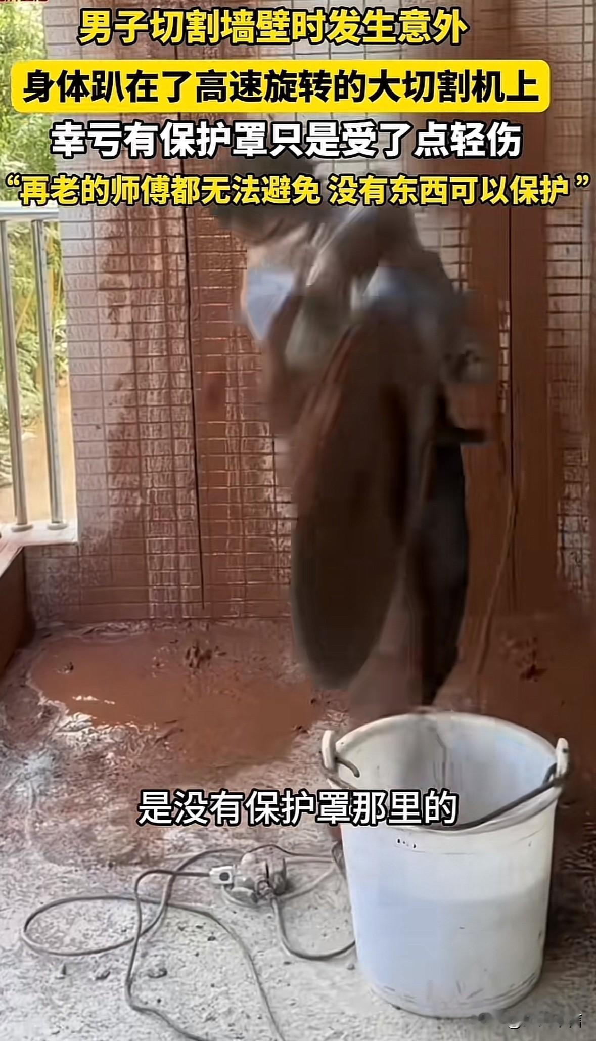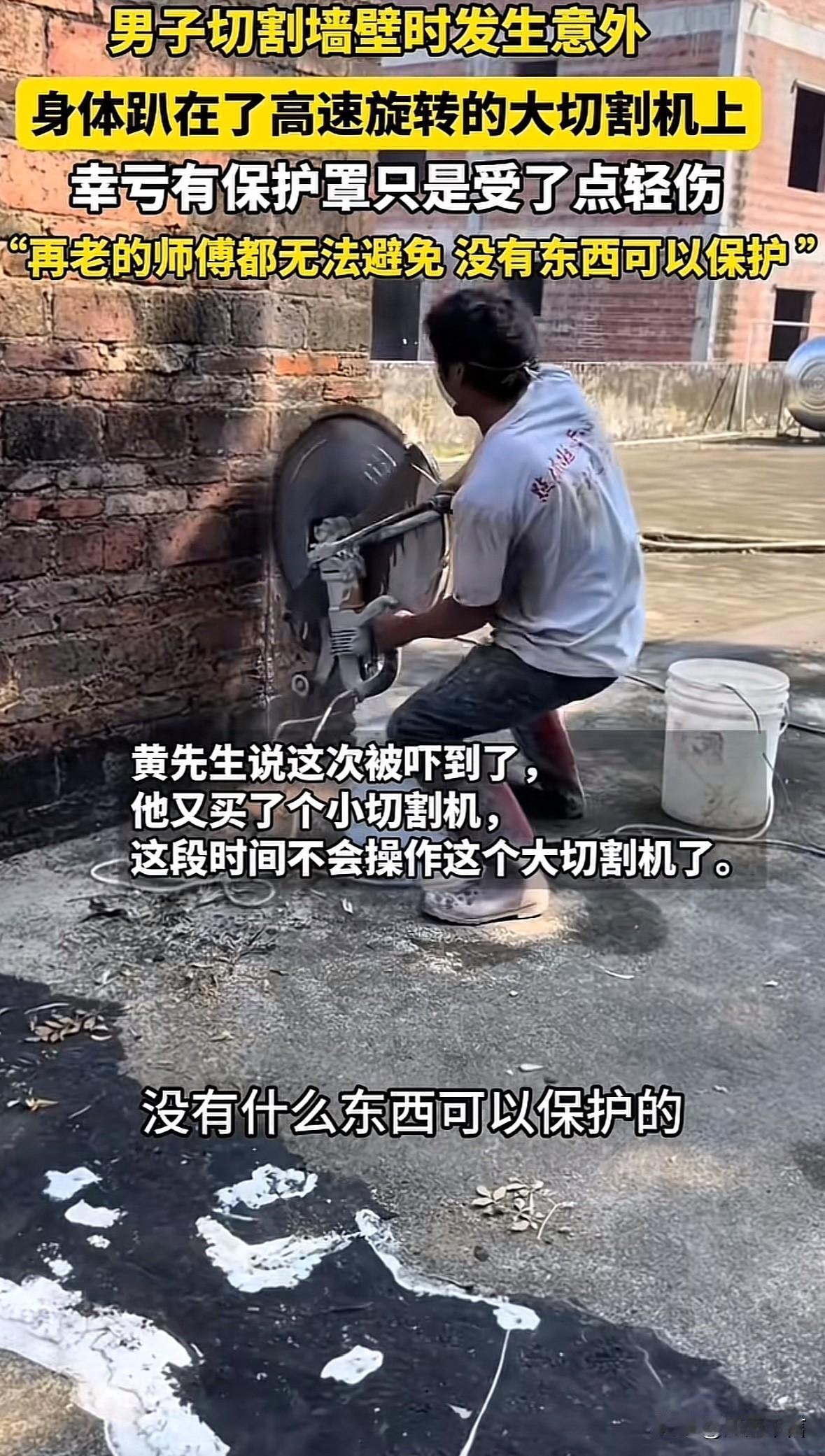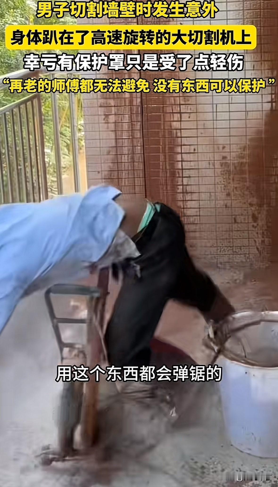 太危险了!广东湛江一男子在使用大切割机作业时发生意外,切割机突然摊开,而他本人也被带着趴在来切割机上,幸亏有保护罩,否则后果不堪设想 他也坦言想想都后怕,但是说这个切割机就是这样,就算是老师傅也不可避免,现在他买了一个小切割机,这段时间都不会操作这个大切割机了 这个行业的人太不容易了,本来就存在安全隐患的设备,什么时候发生意外全靠运气,希望有人能设计出安全的切割机,否则如果像男子这样切到肚子还得了 不知道男子的家人看到这个事情,还会不会让他继续做这个工作?