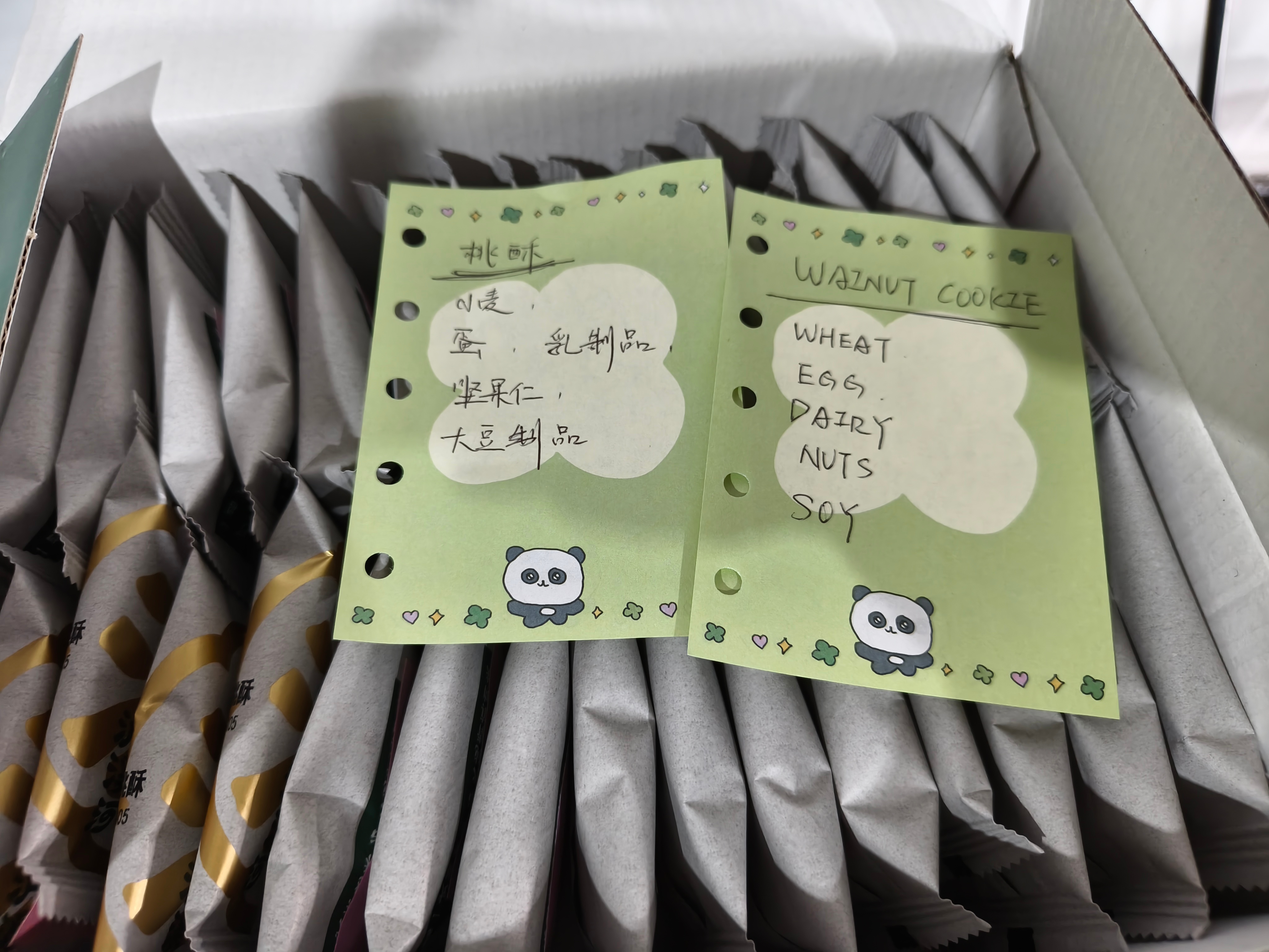 Tarzan给媒体间准备的零食,怕有老师过敏贴心的标注了配料,还准备了三国语言的寄语给媒体老师们(不过孩子害羞说不用宣传)