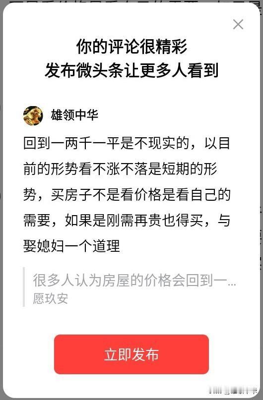 回到一两千一平是不现实的,以目前的形势看不涨不落是短期的形势,买房子不是看价格是看自己的需要,如果是刚需再贵也得买,与娶媳妇一个道理