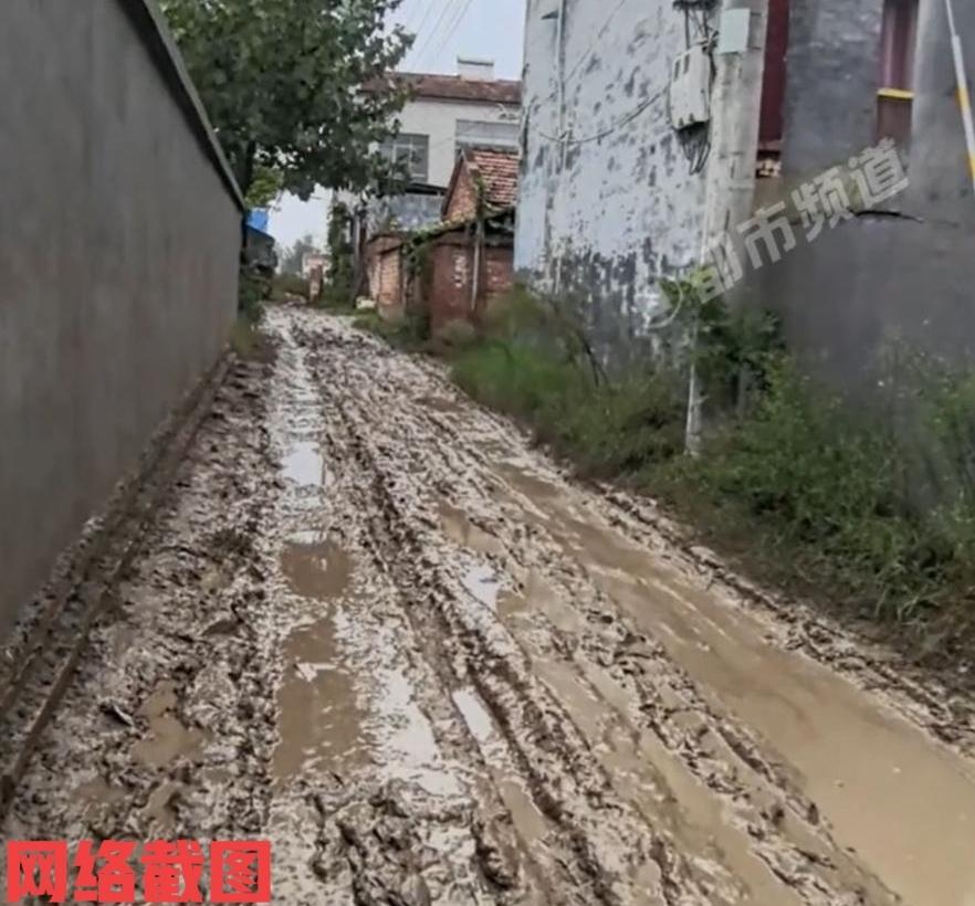 河南有男子假期回农村老家过节。 此时正遇到连日阴雨天,这村中的路也是泥泞难走,