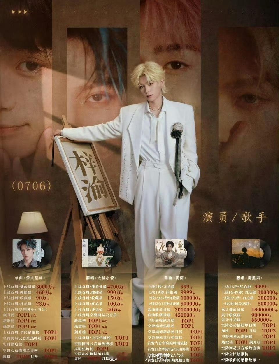 梓渝音乐、演员、商务实绩汇总,放在00生里算什么水平?