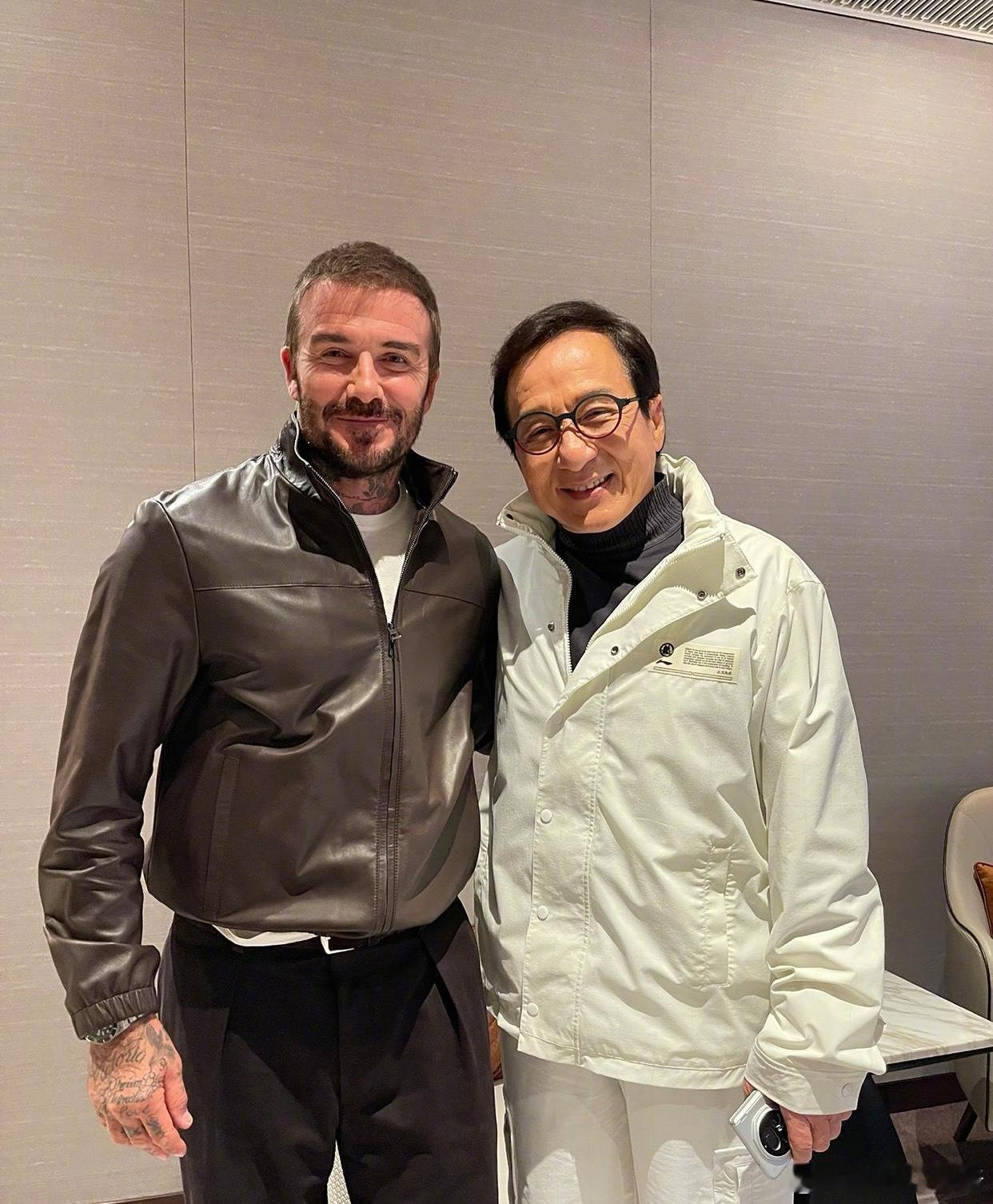 贝克汉姆和成龙夹在巨人姚明和奥尼尔中间像个手办,主要姚明和奥尼尔太高了,还是他两人同框画面比较和谐。